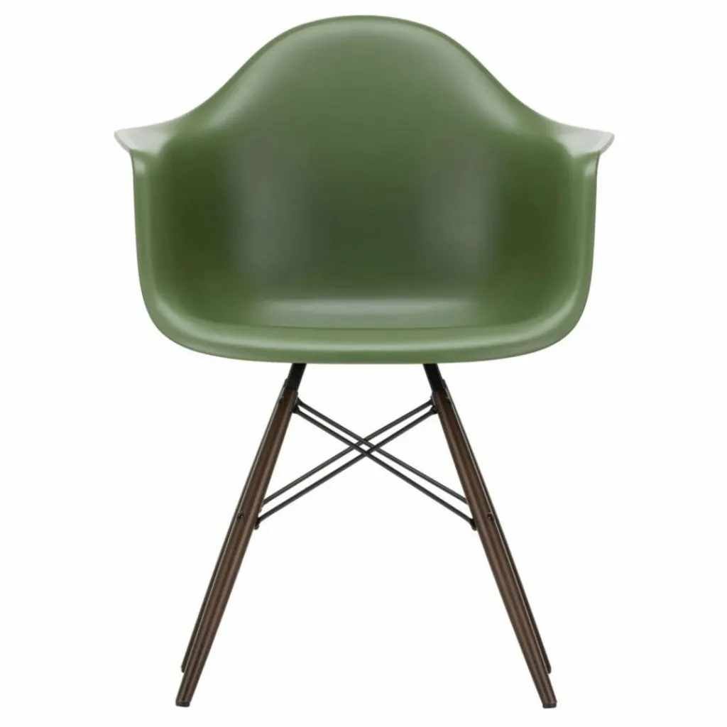 La chaise DAW (Dining Height Armchair Wood Base), conçue par Charles et Ray Eames, est un exemple emblématique d’un siège dont la coque peut être associée à différents types de piètements. Son piètement en bois crée un contraste intéressant avec la coque en plastique recyclé post-consommation. Cette combinaison de matériaux offre non seulement un aspect visuel attrayant, mais elle contribue également à la durabilité de la chaise en utilisant des matériaux recyclés.
