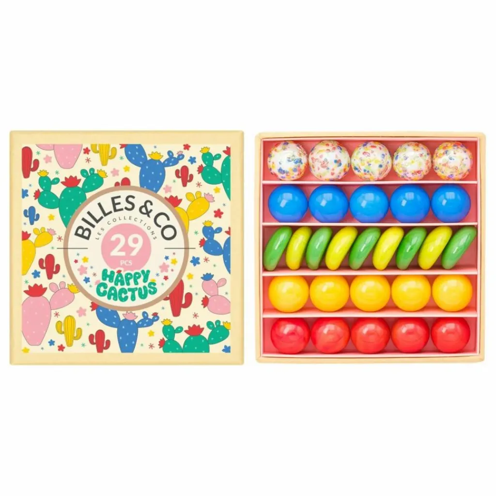 Les boîtes Billes & Co sont de véritables boîtes aux trésors. Les billes sont sélectionnées puis rangées à la main. Elles aideront au développement de votre enfant : acquérir un vocabulaire esthétique, ranger pour structurer la pensée, exercer la motricité…