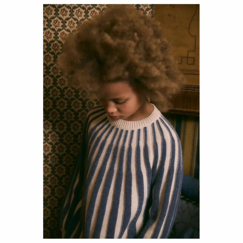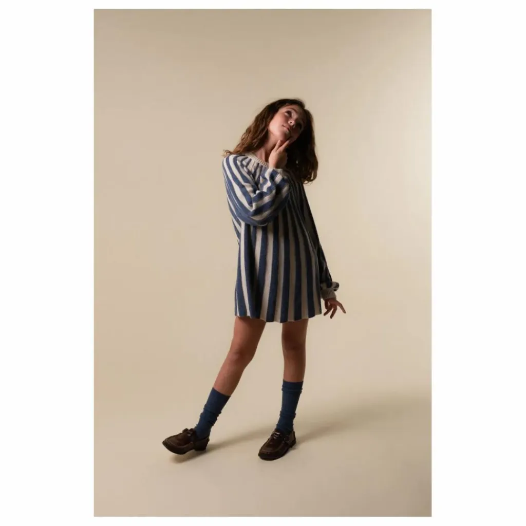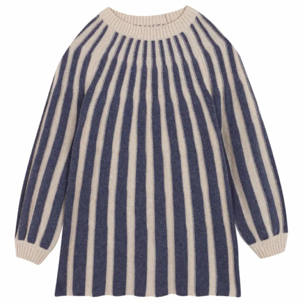 - Robe en tricot à rayures verticales avec encolure et poignets côtelés.