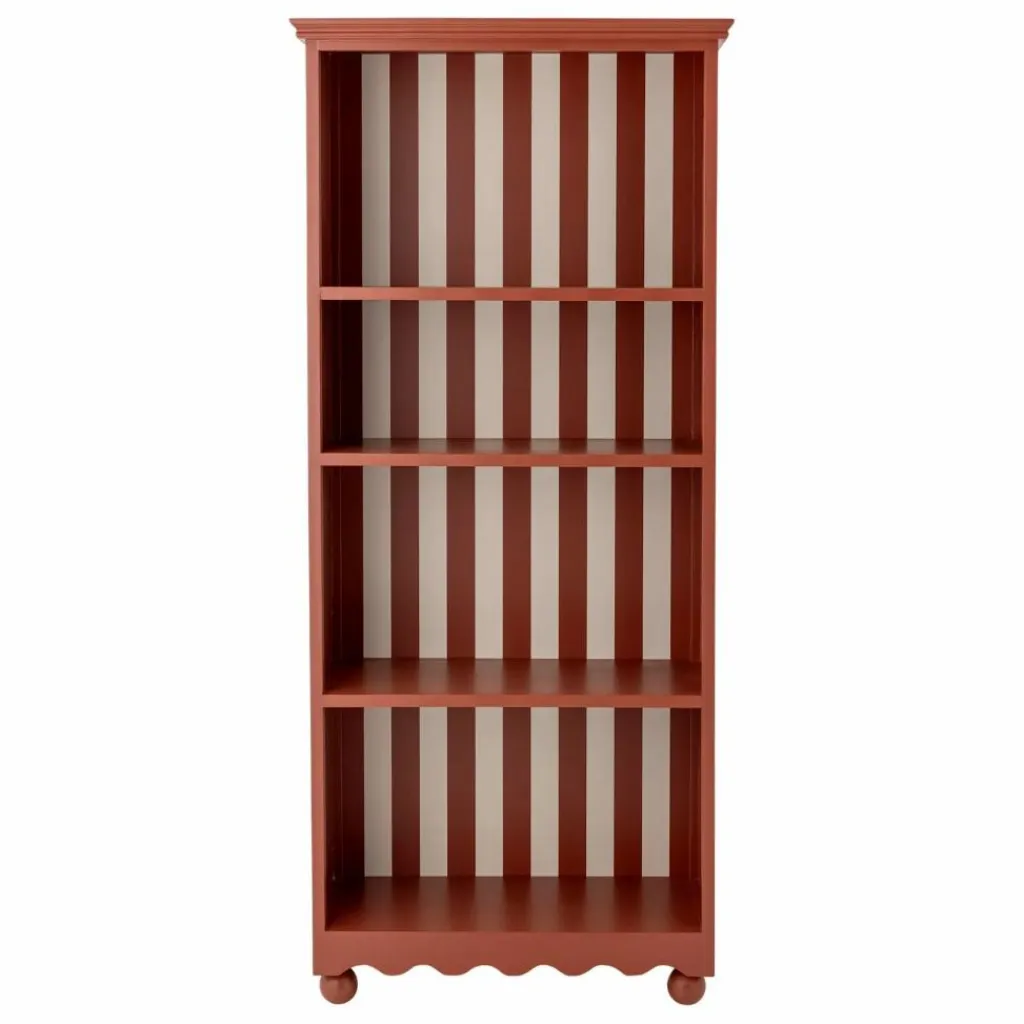 - L’Armoire Sasha de Bloomingville est fabriquée en MDF peint en rouge, avec un bord inférieur ondulé et de petits pieds ronds. Les détails légèrement arrondis et le choix des couleurs confèrent à l’armoire une touche ludique et décorative.