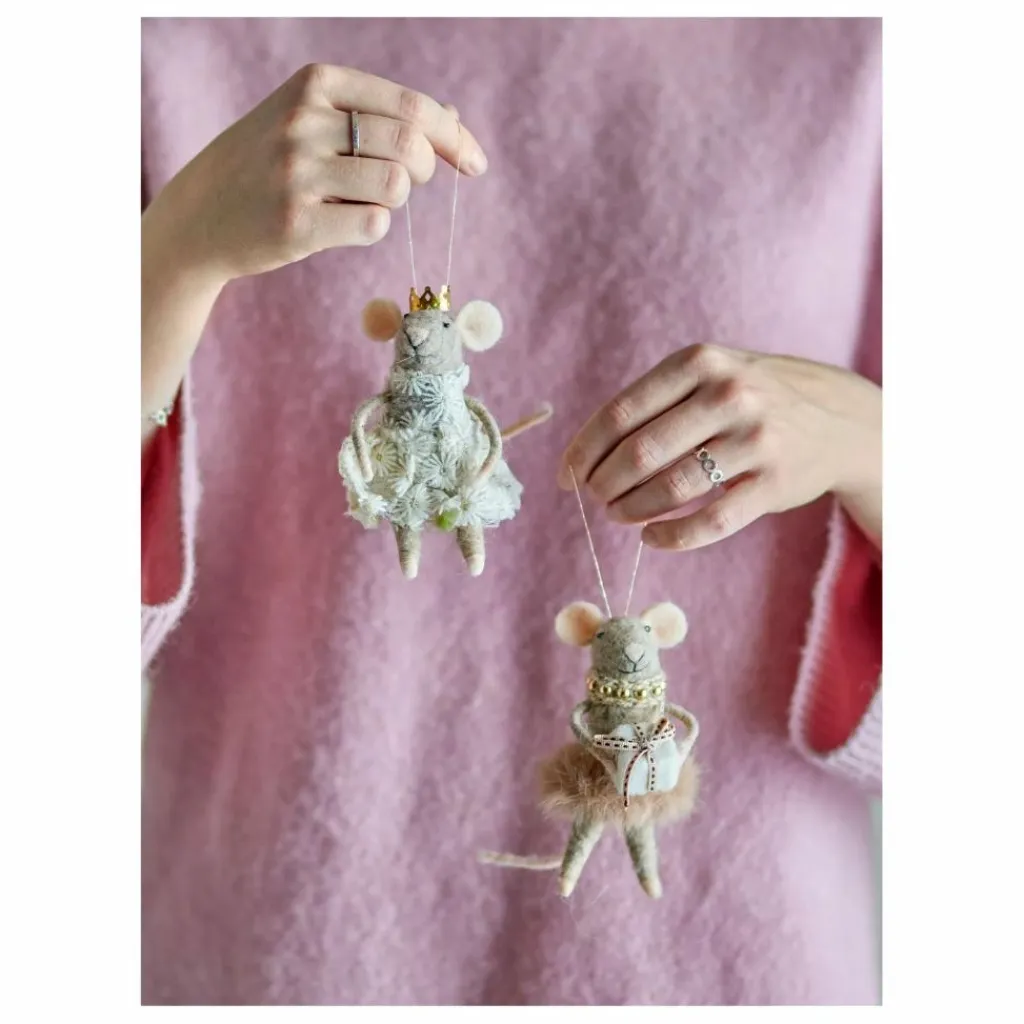 - Le Bibelot Peo de Bloomingville présente deux adorables souris, feutrées en laine et décorées de détails charmants. Leur apparence festive contribue à une ambiance ludique dans les décorations de Noël. Équipées de cordons de suspension dorés, ces souris sont parfaites pour être suspendues à l’arbre de Noël ou incluses dans un arrangement décoratif plus grand, où elles ajoutent une atmosphère chaleureuse à tout espace.