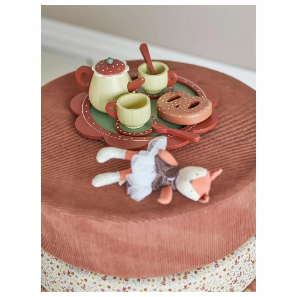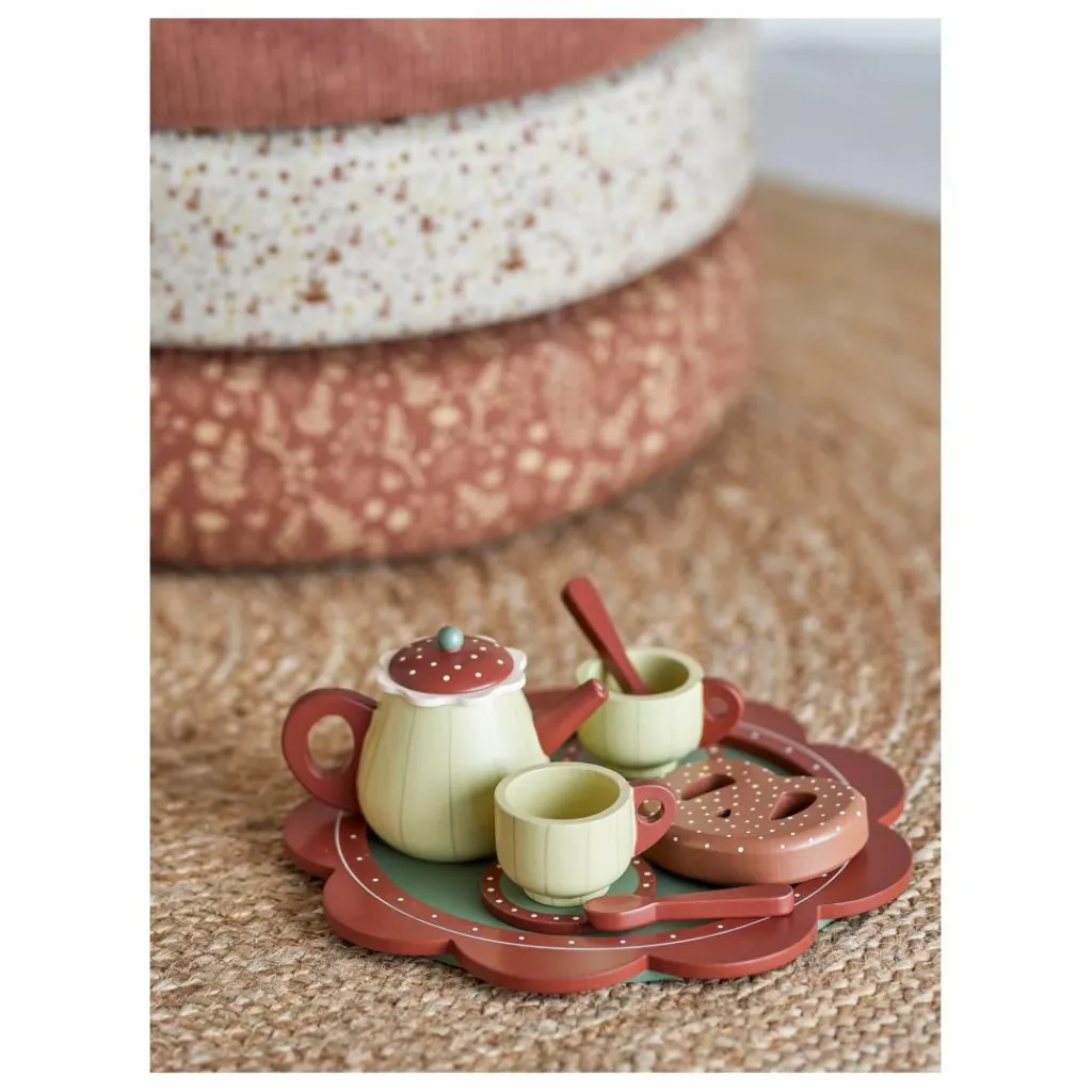- Le Set de jeu Bette de Bloomingville MINI se compose de plusieurs pièces formant un service à thé. Ce joli set aux couleurs douces comprend 9 pièces, toutes fabriquées en bois certifié FSC. Le set comprend : un plateau, une théière, des tasses, des soucoupes, des cuillères et un bretzel. Avec ce service à thé et le plateau fleuri, les enfants peuvent jouer et inviter leurs nounours et amis à un goûter.