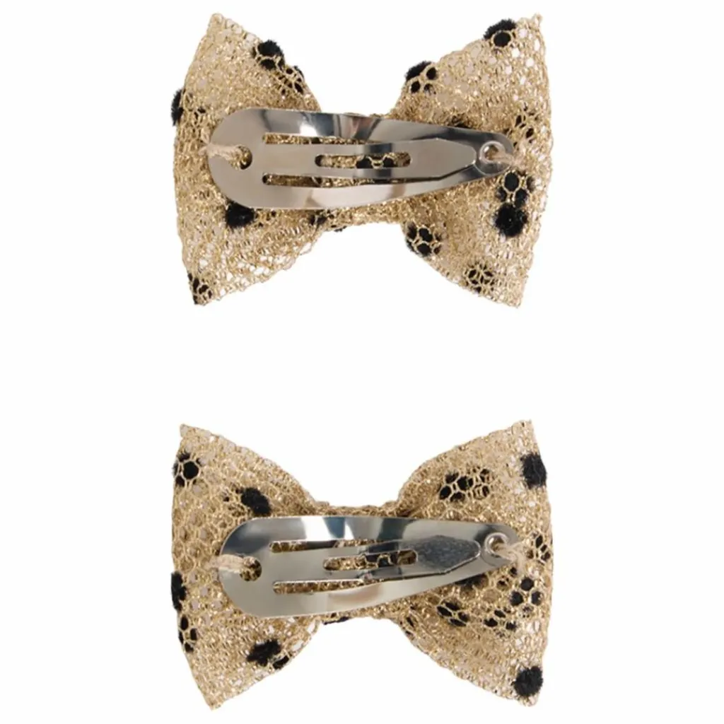 - Avec leur nœud en tulle orné de pois en velours, les barrettes Miniclic complètent à la perfection les tenues habillées des filles. Elles comportent un système d’attache clic-clac discret. En forme de nœudTulle et veloursFermeture discrète