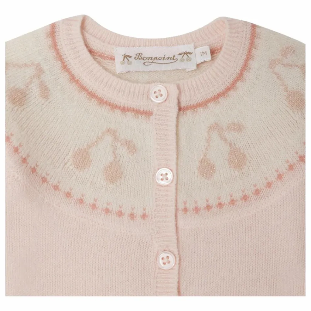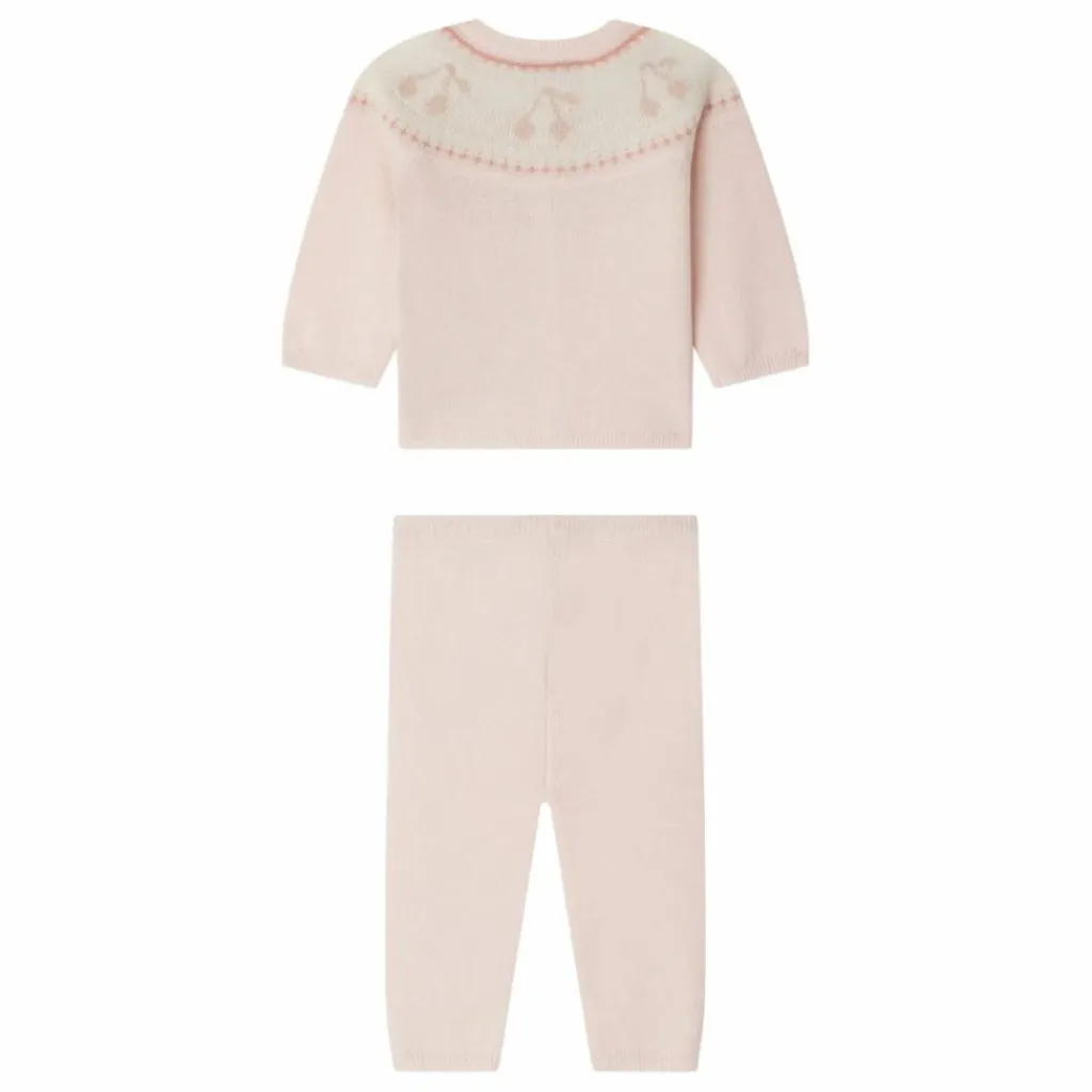 - L’ensemble Jenny pour bébé est idéal pour rester au chaud et bénéficier d’un confort optimal. Il se pare d’un ravissant motif de cerises en jacquard sous l’encolure.En laine et cachemire certifiés qui garantissent le bien être animal Ouverture boutonnée devantFinitions bords-côtesDétails métallisés
