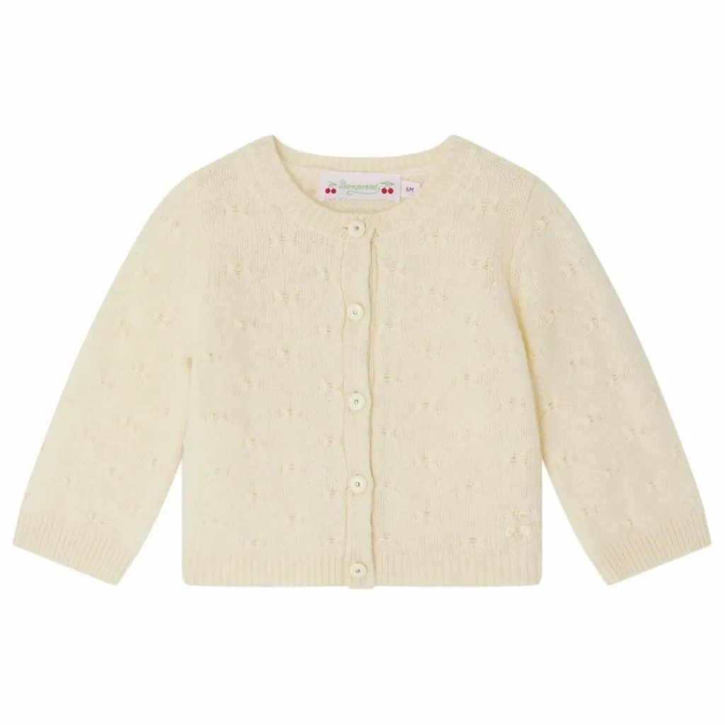 - Ce cardigan à col rond Tibile garde les bébés bien au chaud grâce à sa confection mêlant laine et alpaga. Ce modèle élégant se pare d’un point fantaisie sur l’ensemble. En laine et alpagaFinitions bords-côtesCerise Bonpoint brodée à la base