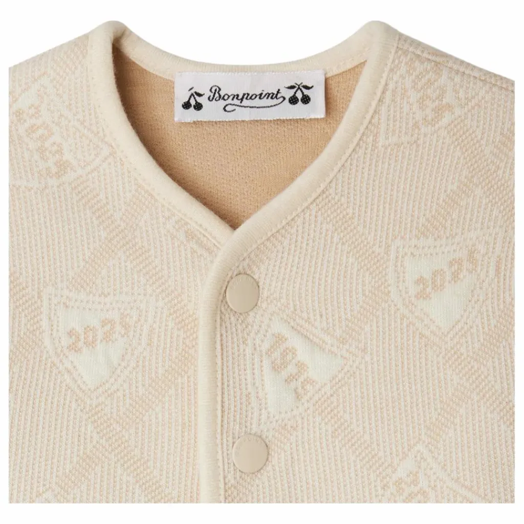 - Le sweat Eris pour bébé mise sur l’originalité avec son motif blason en jacquard. Confectionné en coton biologique majoritaire, ce modèle matelassé est également apprécié pour son confort.En coton biologique majoritaireCol légèrement en VFermeture boutonnée devant