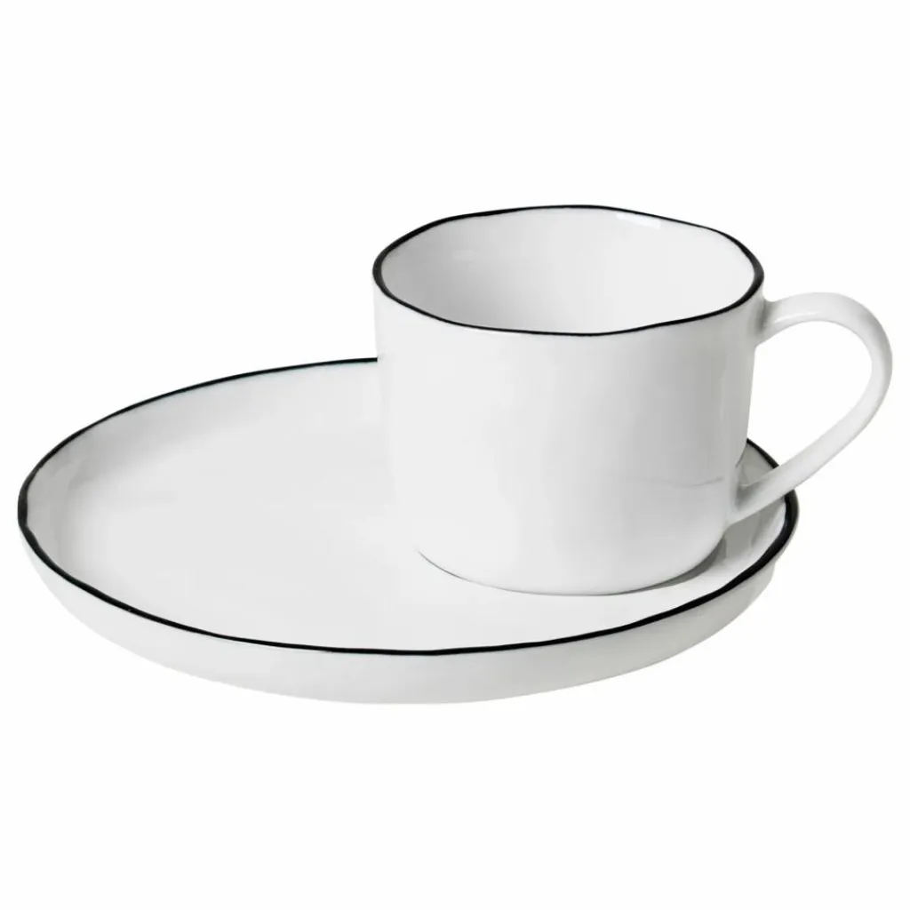 Cet ensemble Salt en grès émaillé apportera une petite note minimaliste à votre quotidien. La jolie bordure à délicatement été peinte à la main.