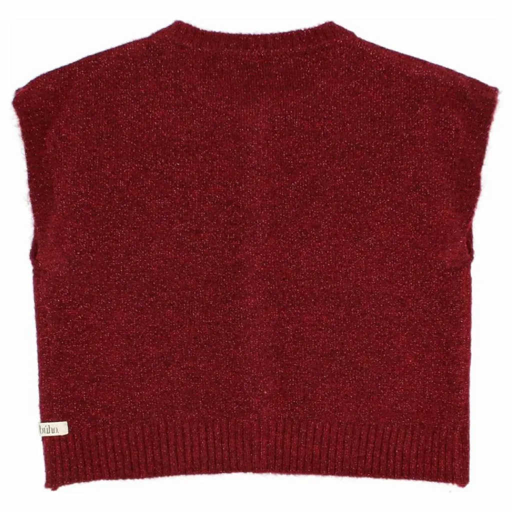 - Gilet en maille lurex. Col rond et boutonnage sur le devant. Finitions côtelées.