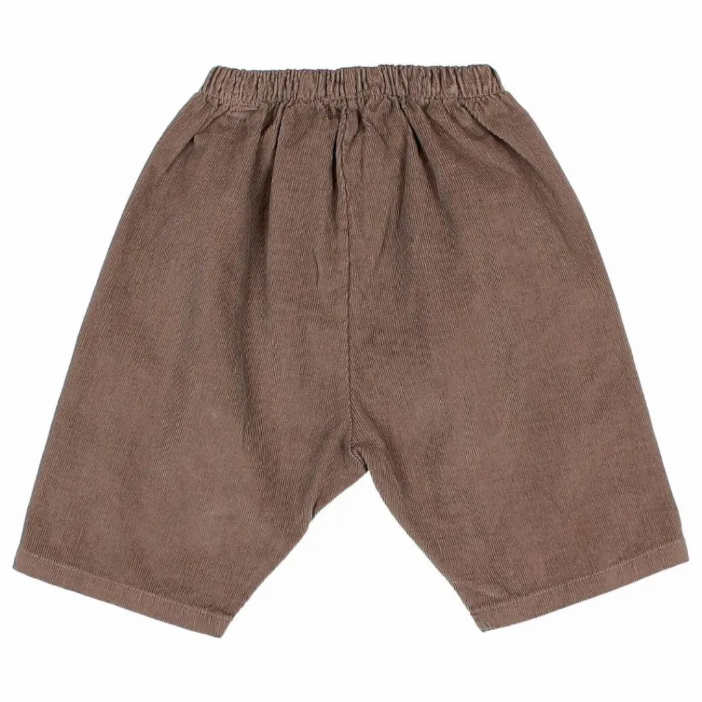 - Pantalon en micro velours côtelé. Ceinture élastique. Étiquette sur la ceinture. Coutures latérales avant.