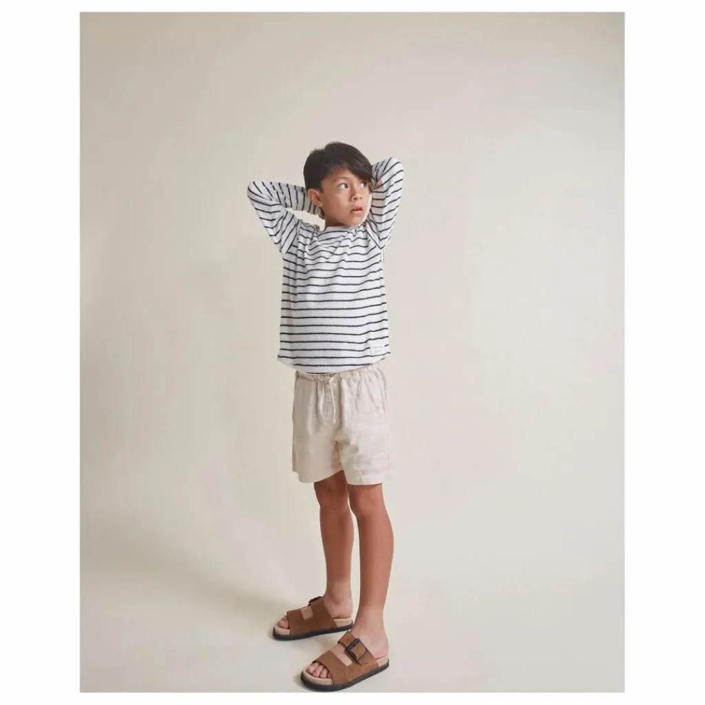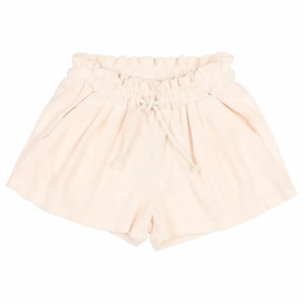 - Short en éponge. Taille élastiquée avec cordon de serrage réglable en coton. Deux poches sur le devant.