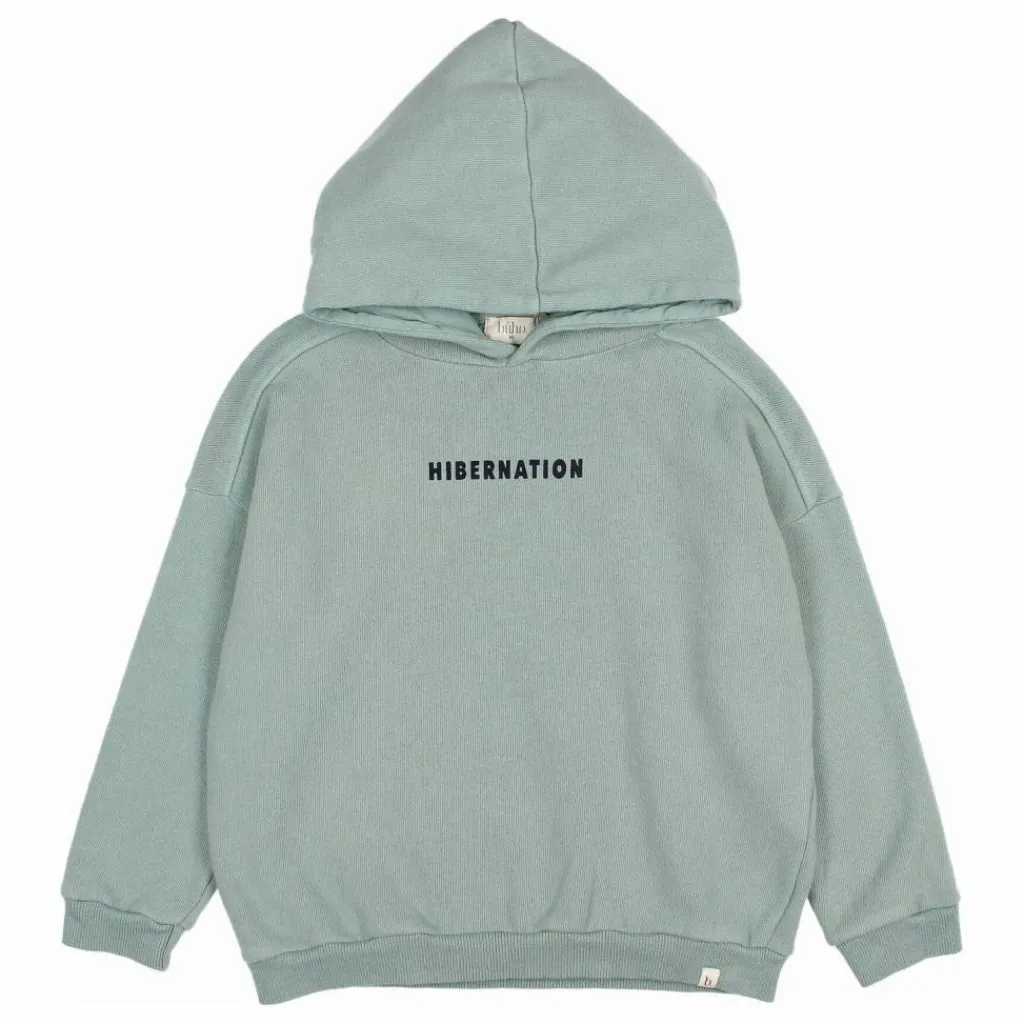- Sweat à capuche en molleton doux. Imprimé « Hibernation » sur la poitrine. Étiquette sur l’ourlet. Finition côtelée.