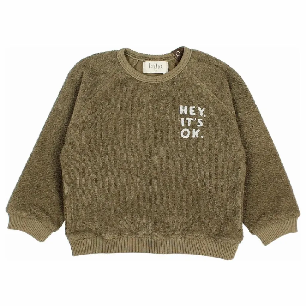 - Sweat en éponge avec motif imprimé sur la poitrine. Col rond avec fermeture à bouton-pression au dos. Manches raglan. Finition côtelée.