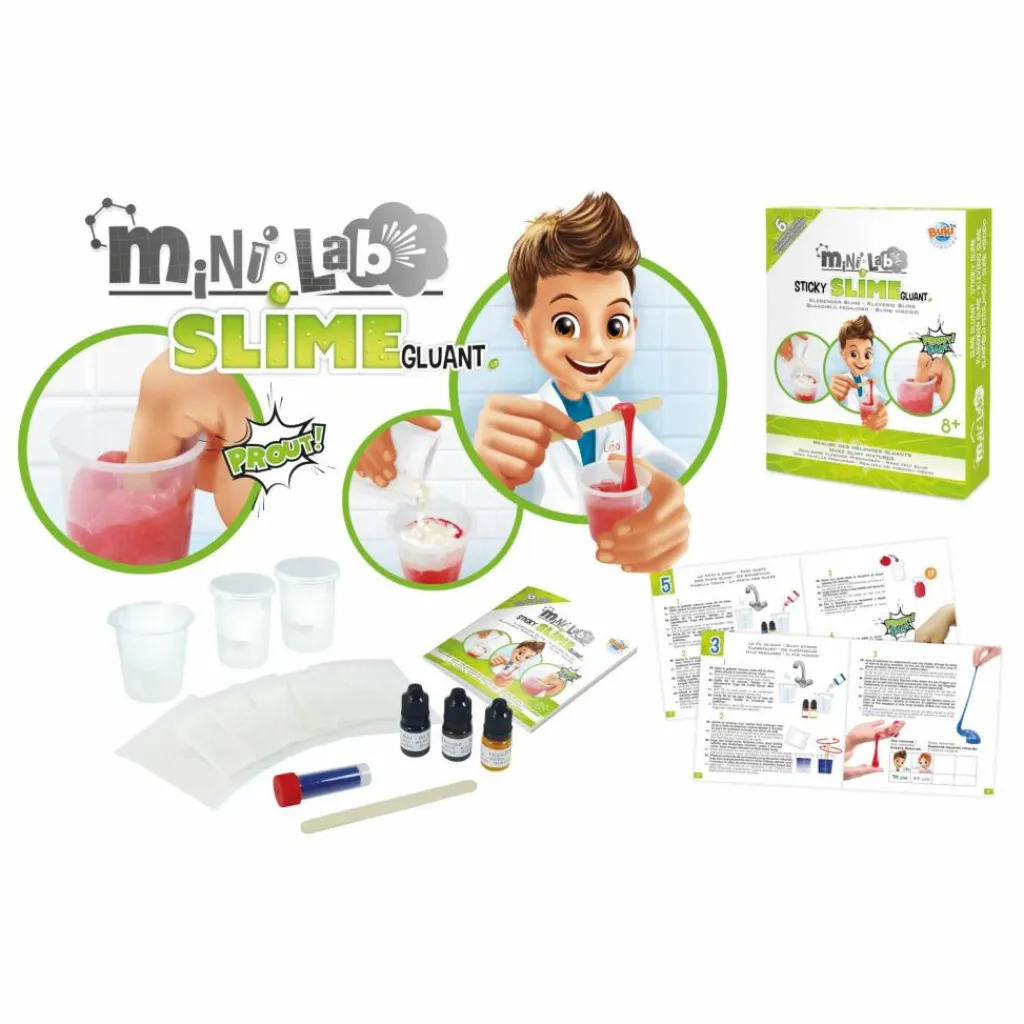 Un coffret pour créer des mélanges gluants sans danger. 6 activités dont : slime gluant, balle rebondissante, pâte à prout…