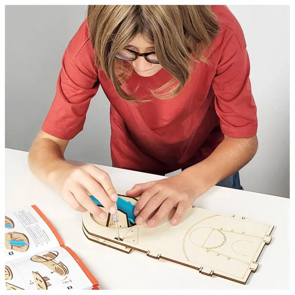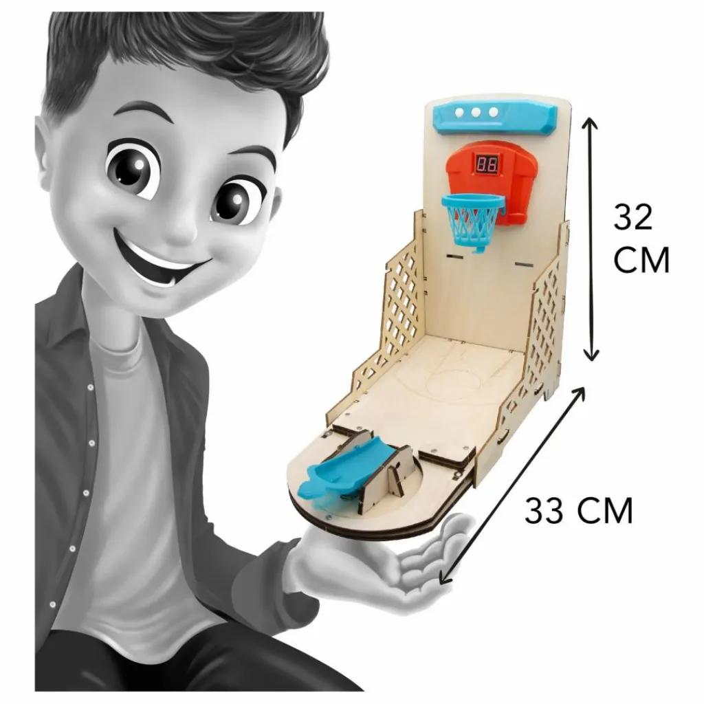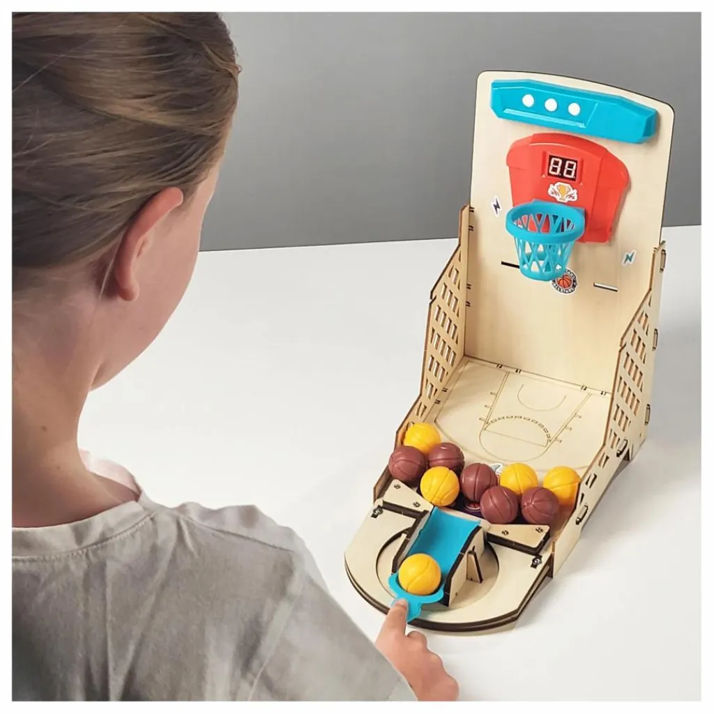 - Un coffret pour monter son panier de basket électronique. Avec le tournevis inclus, l’enfant va assembler sans soudure et sans danger: le tableau des scores, le panneau de contrôle, le haut-parleur et le compartiment à piles. Personnalise le panier avec les autocollants.