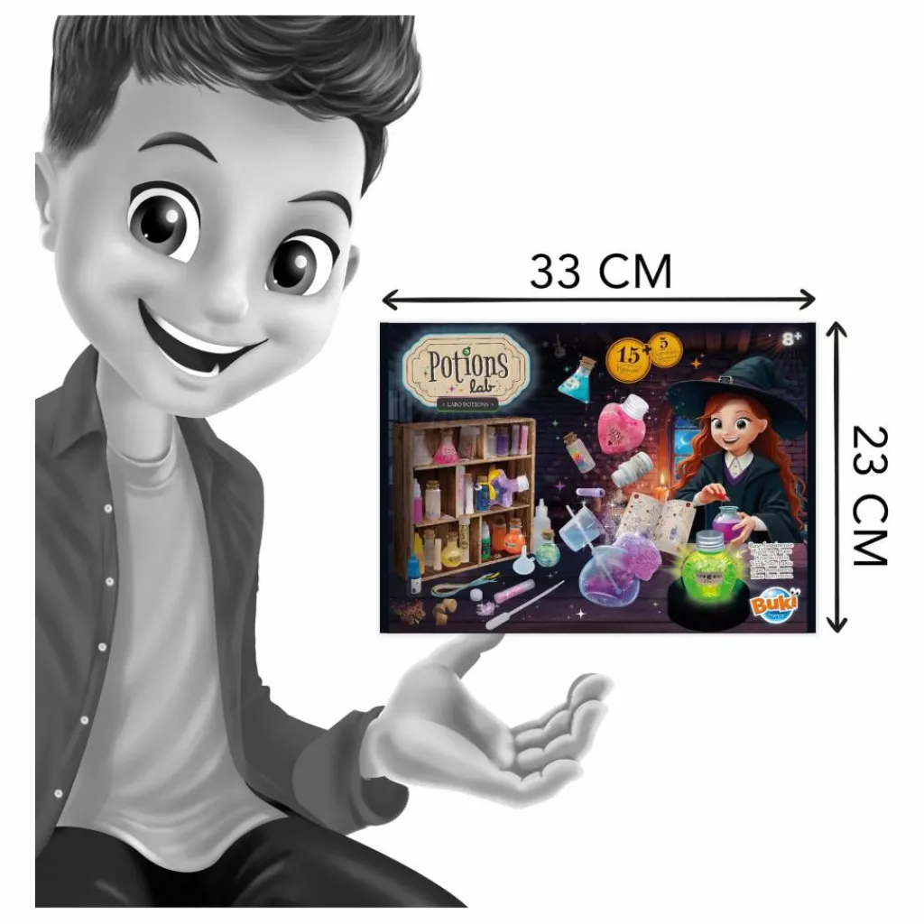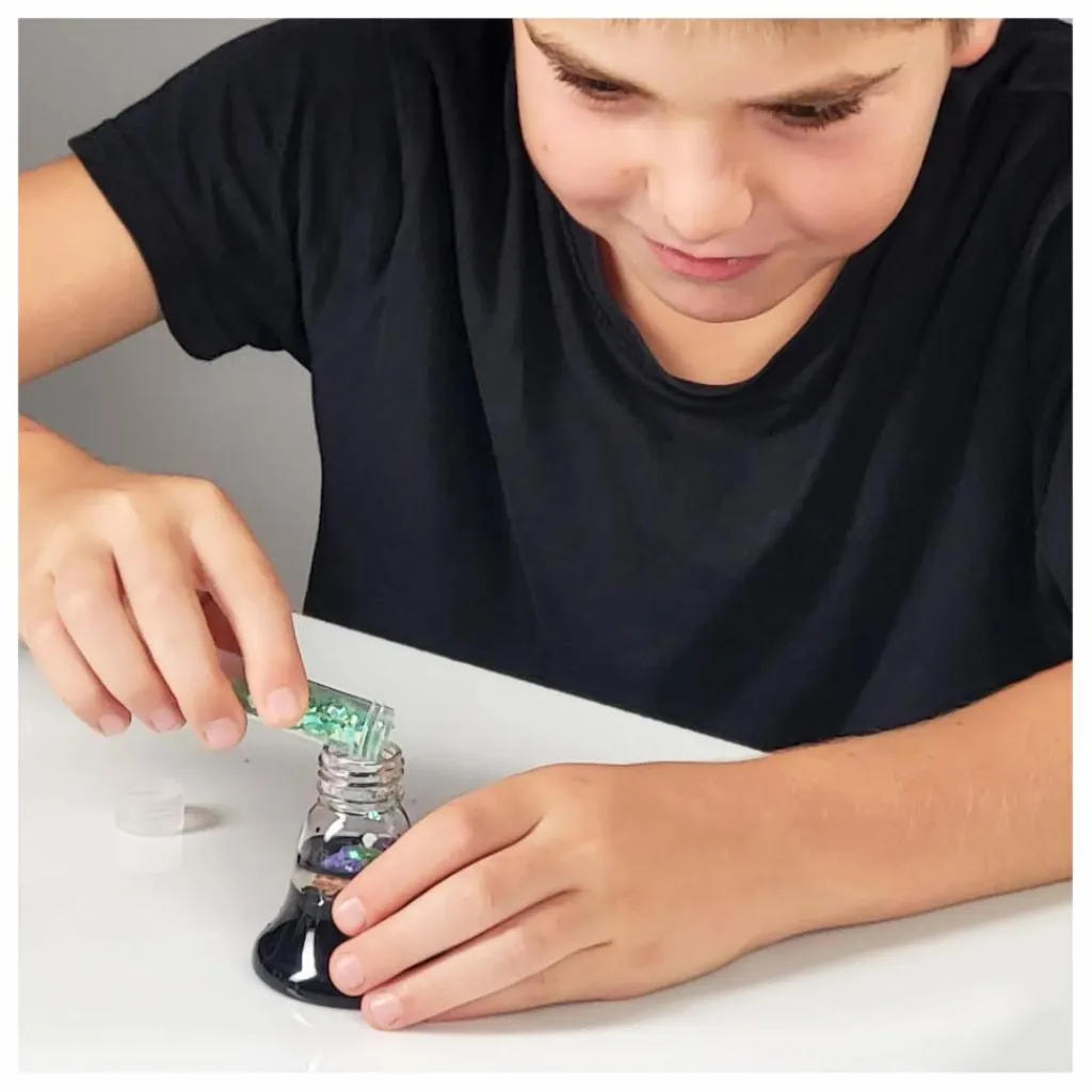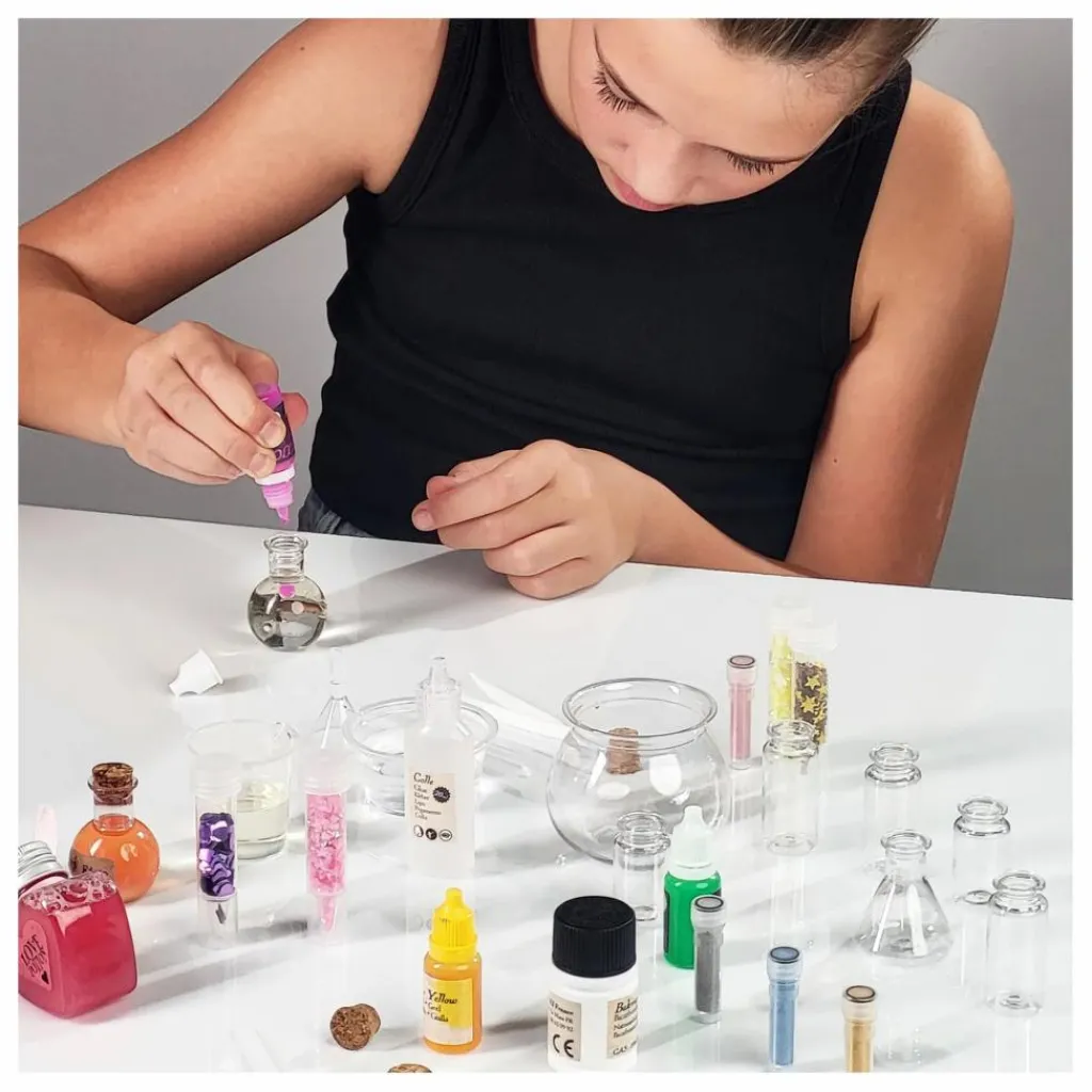 - Crée 15 potions colorées et scintillantes avec tout le matériel fourni.
