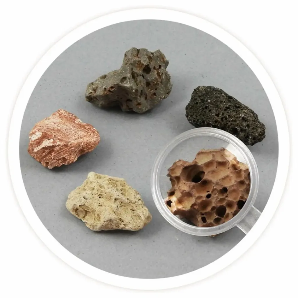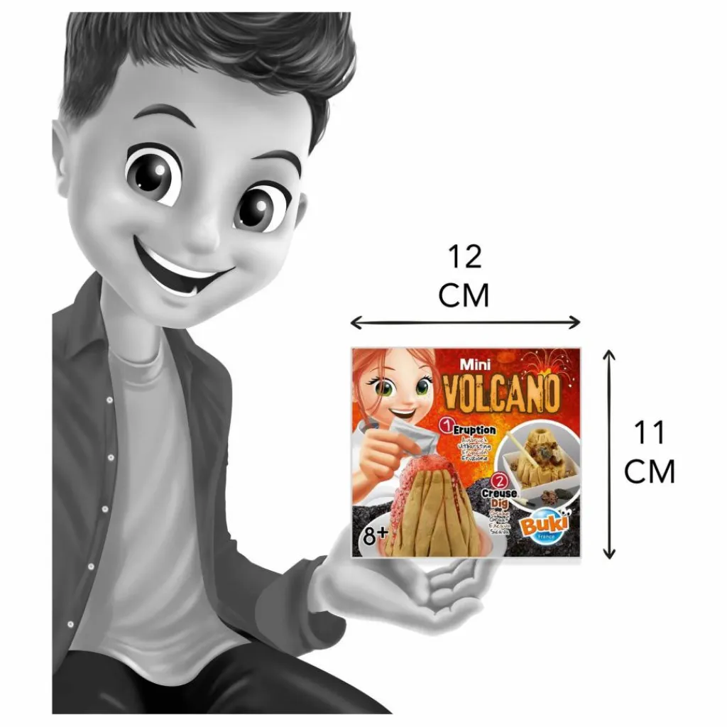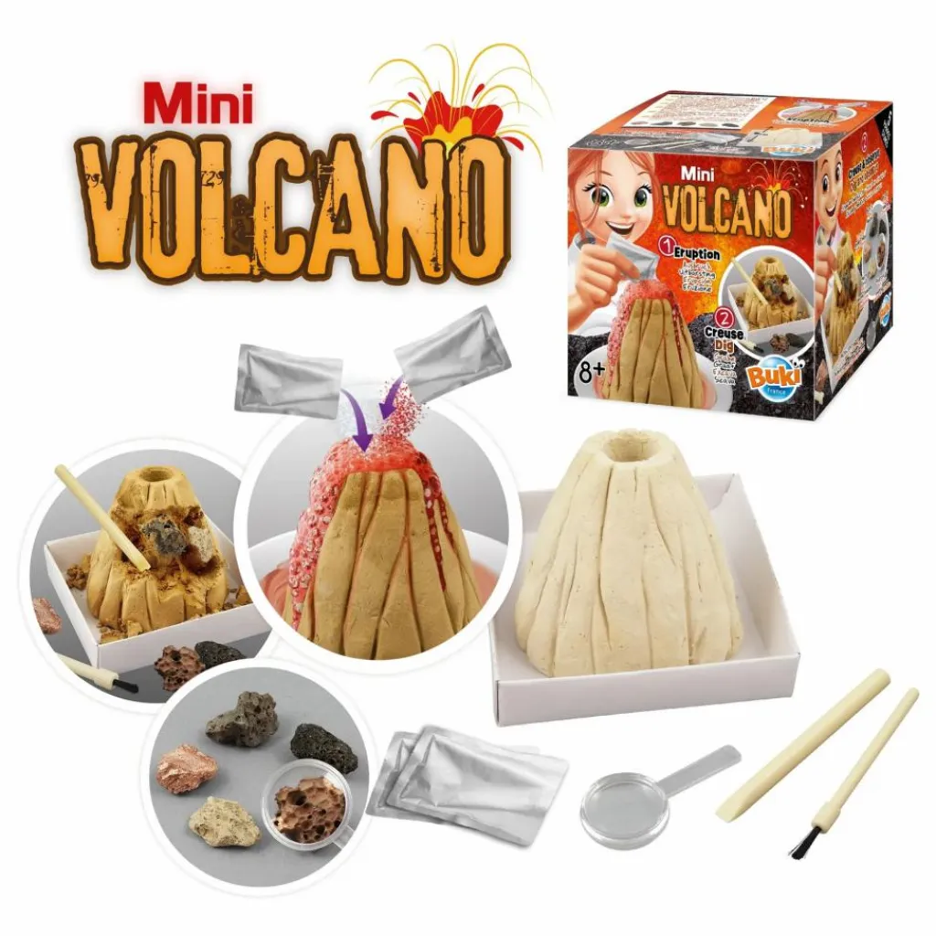 - Reproduis une éruption volcanique avec les réactifs inclus. Avec les outils, creuse le volcan pour déterrer 5 pierres volcaniques.