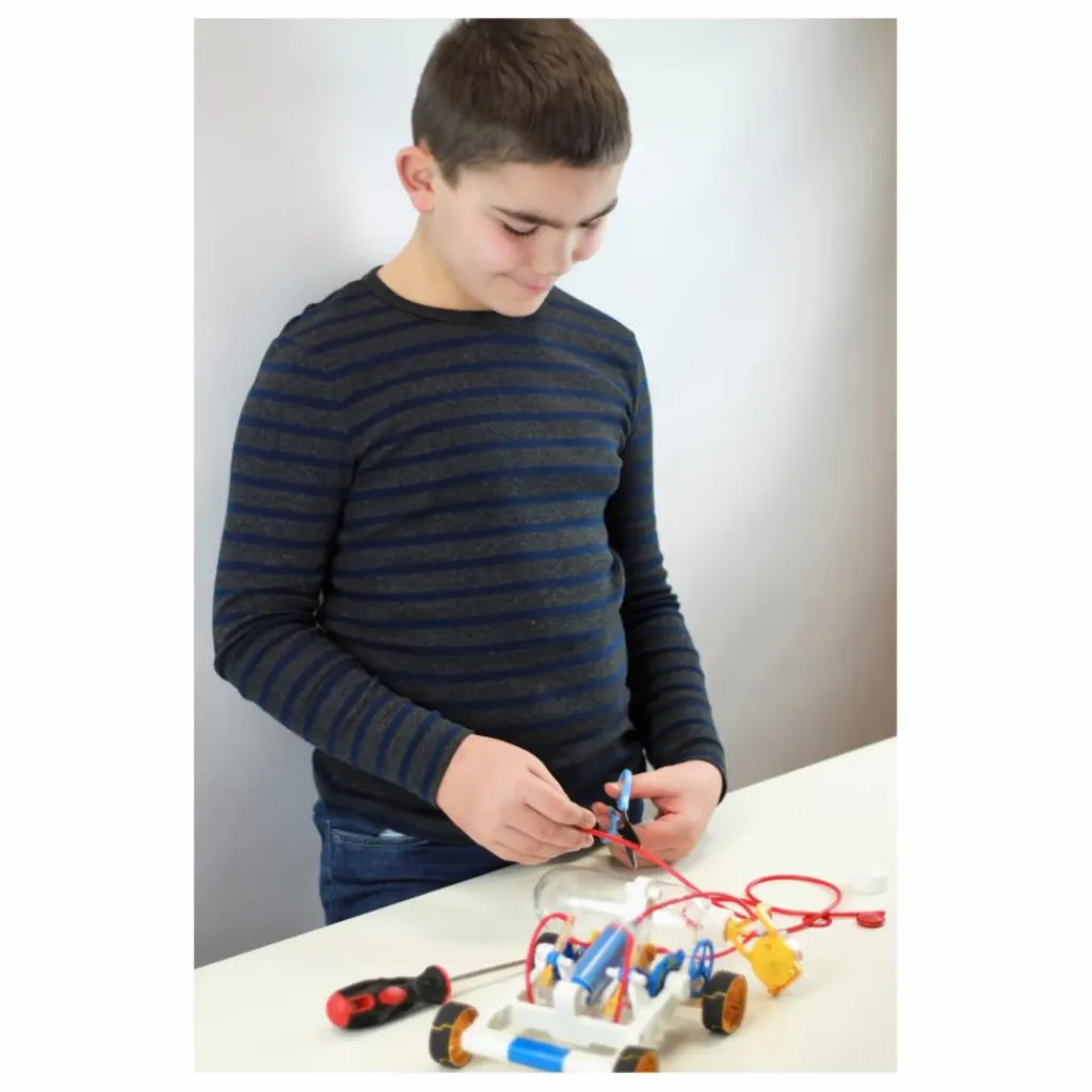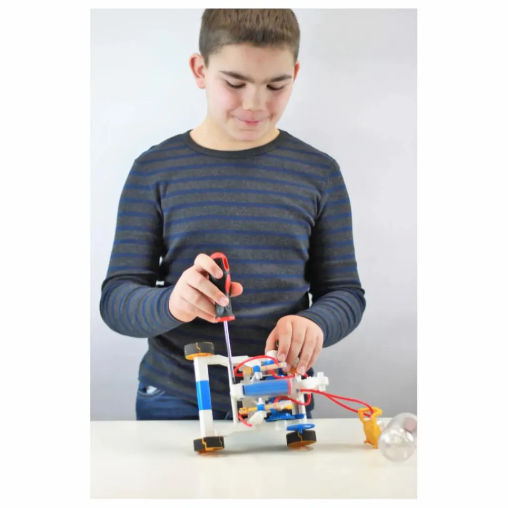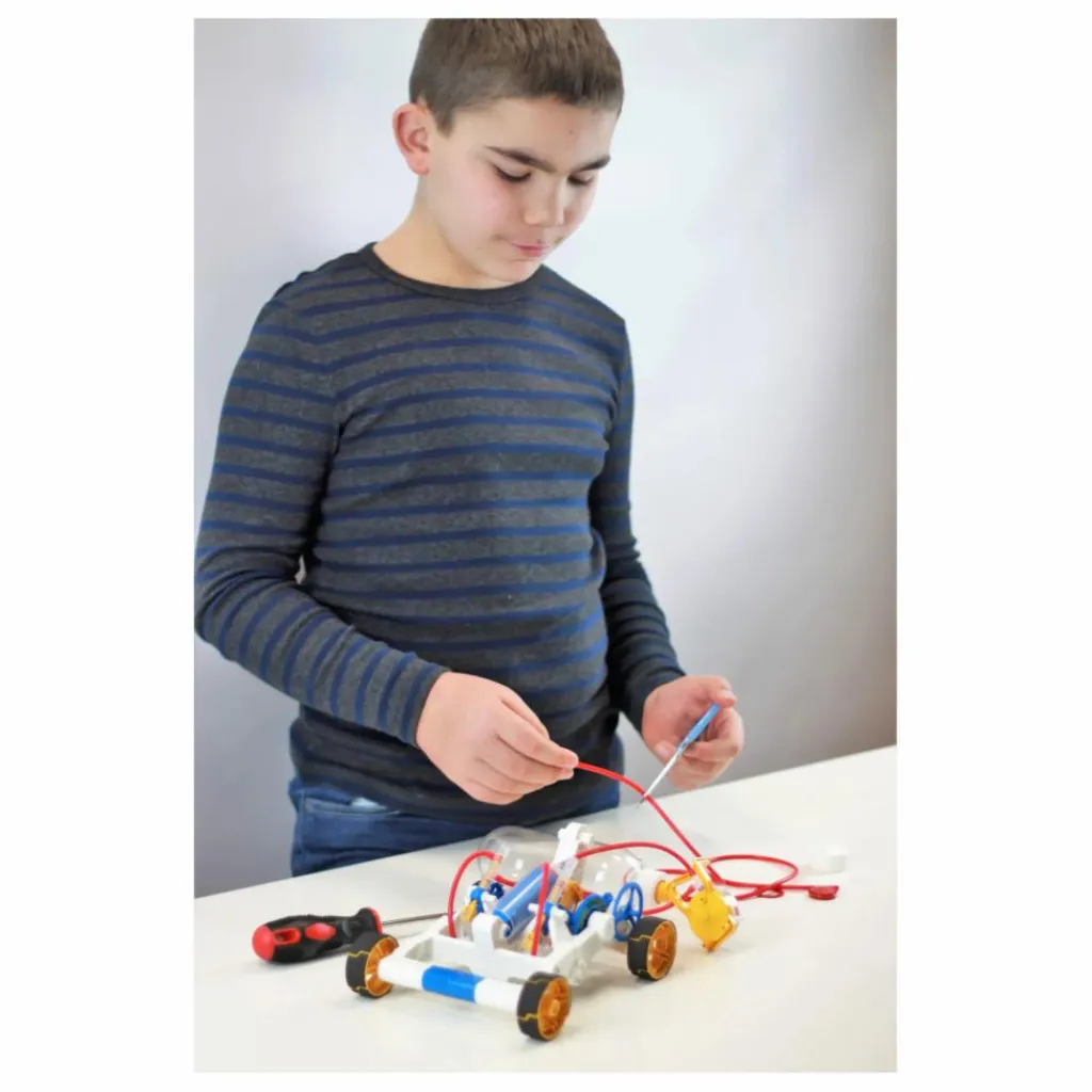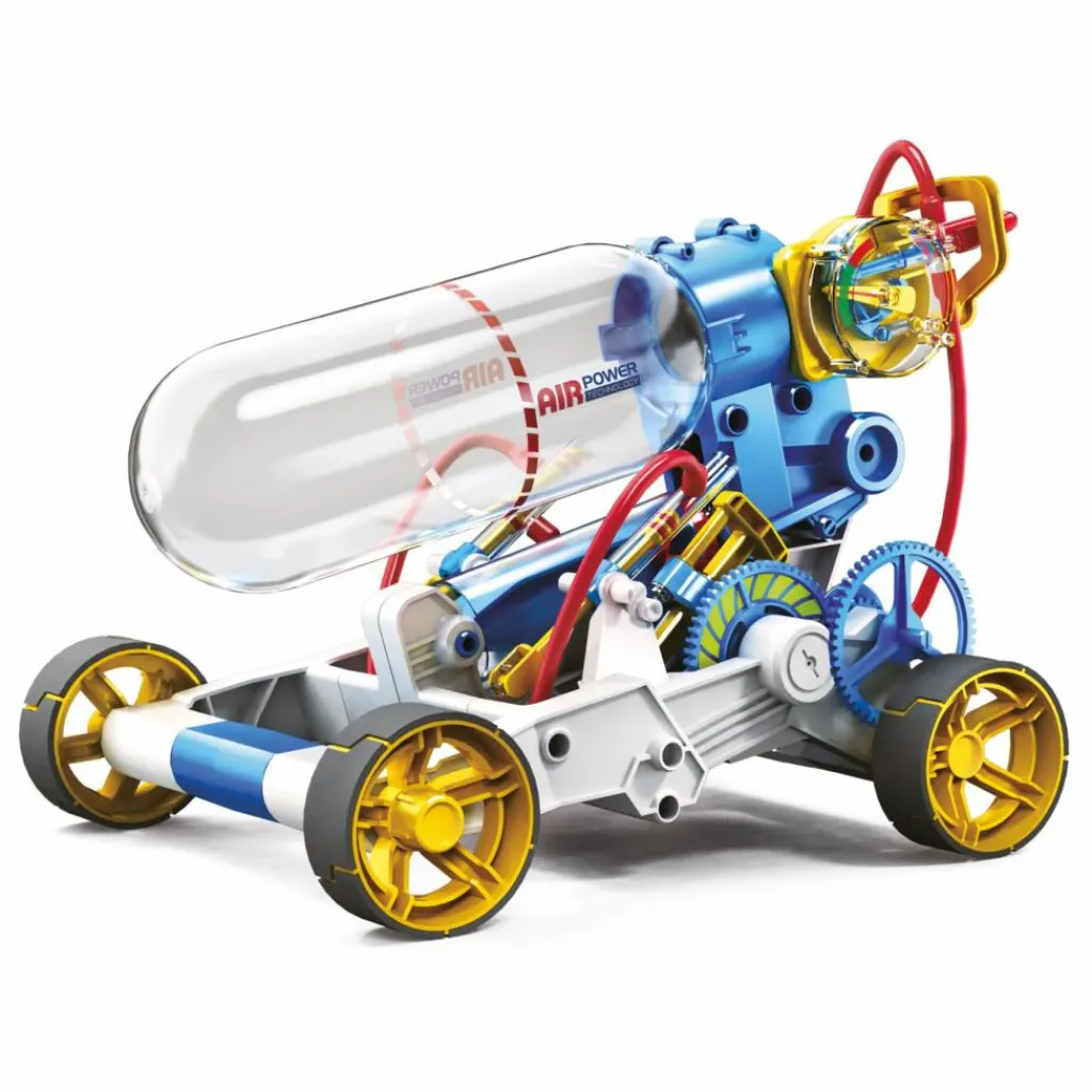 Assemble les pièces afin de construire un super véhicule qui avance grâce à l’air comprimé !