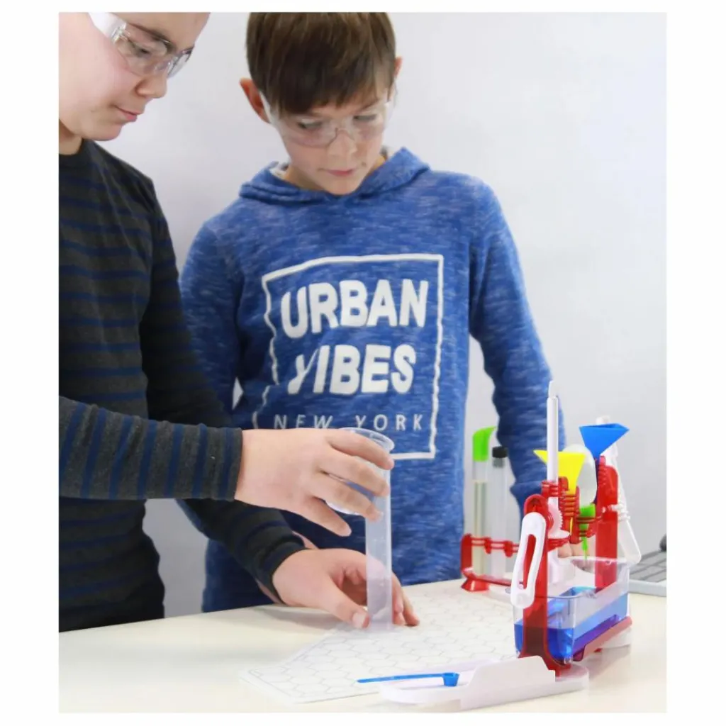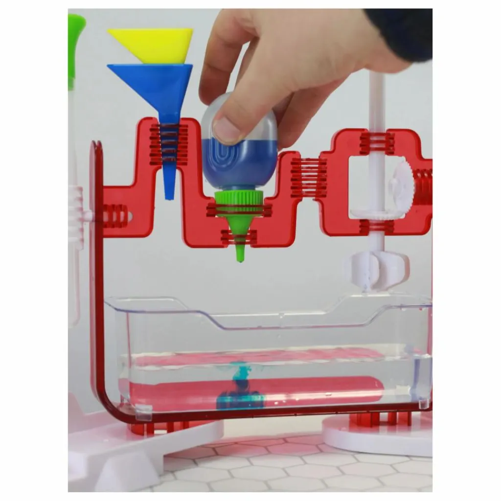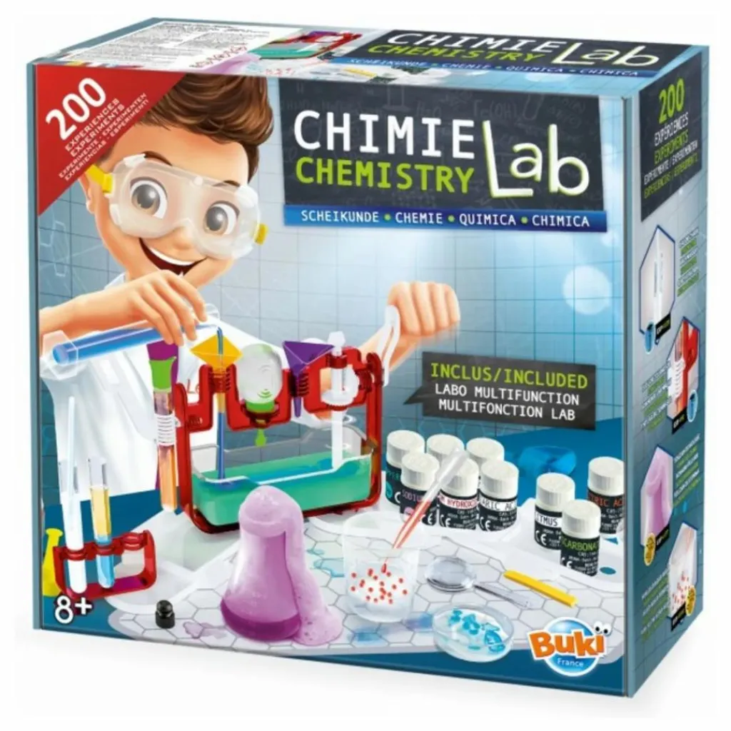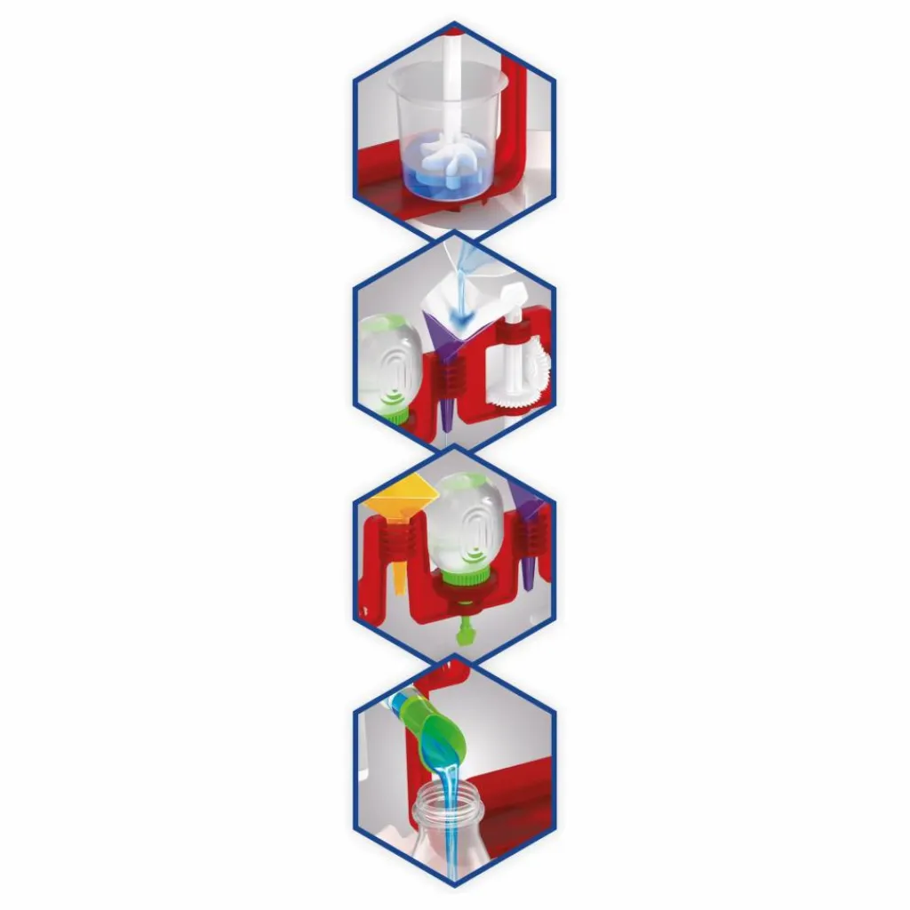 - Deviens un véritable petit chimiste avec le laboratoire multifonctions : mélangeur, entonnoir, goutte-à-goutte, verseur, tapis de protection…