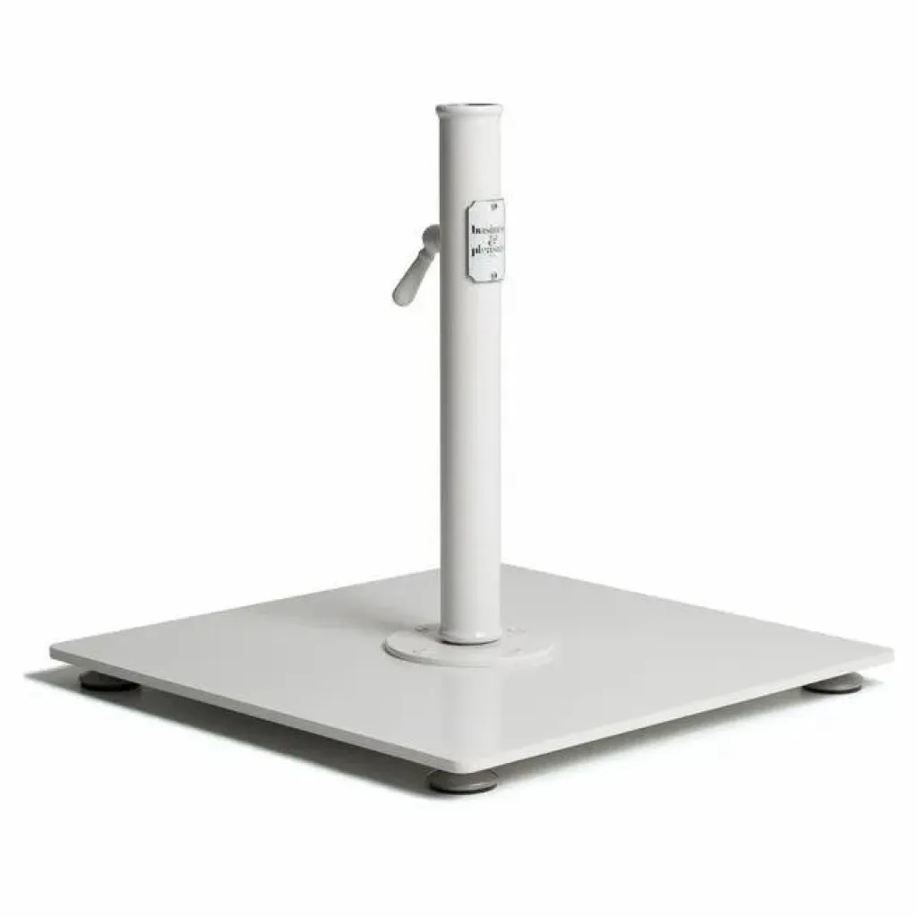 - Base et plaque de montage pré-assemblées, Mât vertical avec poignée, Inserts de mât pour mâts de parasols plus fins, Pieds de mise à niveau (pour terrasses et patios – surfaces planes et dures)
