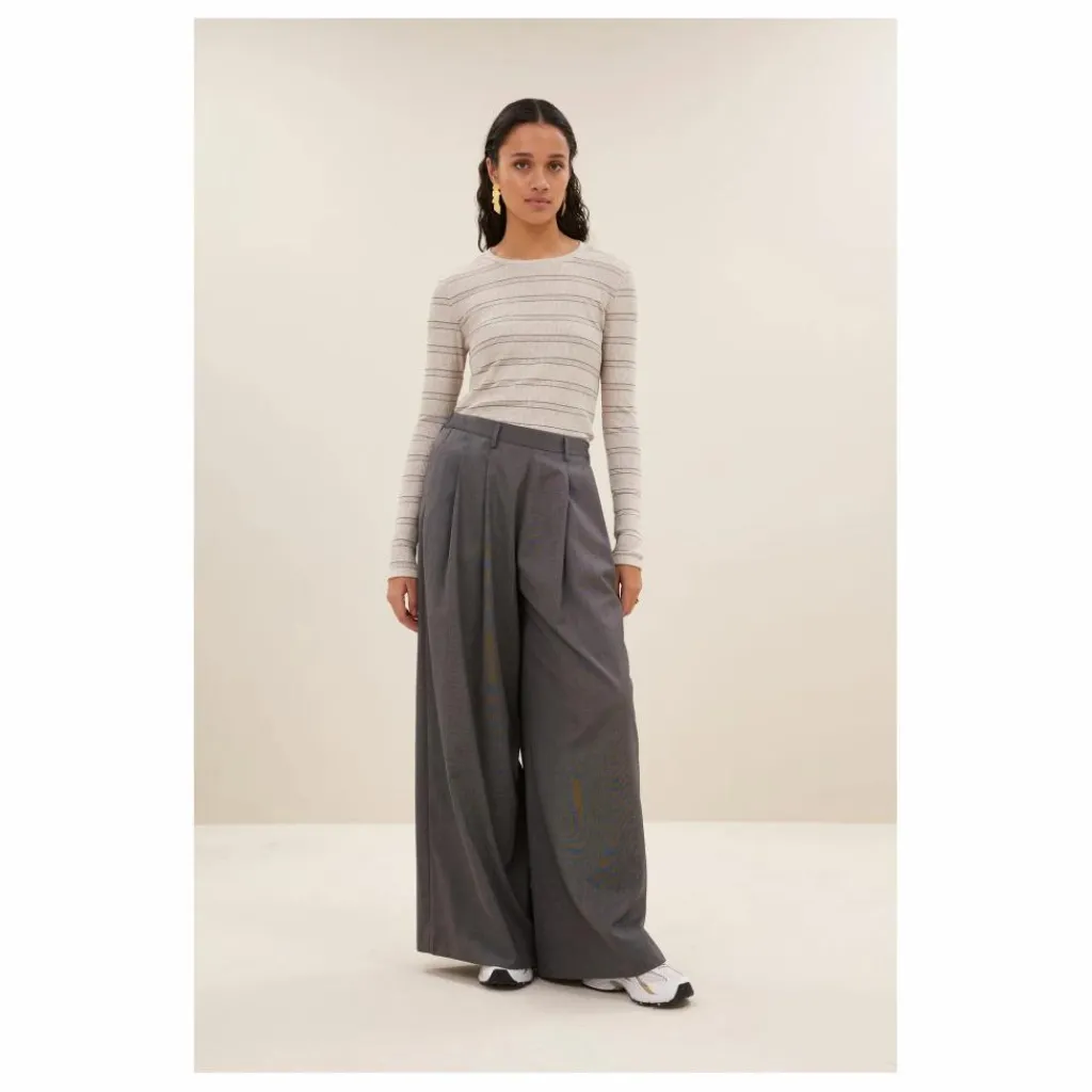 - Découvrez le basic is pearl stripe top, un incontournable pour chaque garde-robe ! Ce t-shirt décontracté avec col rond et manches courtes possède une coupe ajustée. Le motif rayé en rib apporte une allure intemporelle, parfaite à associer avec nos benji viscose pants.