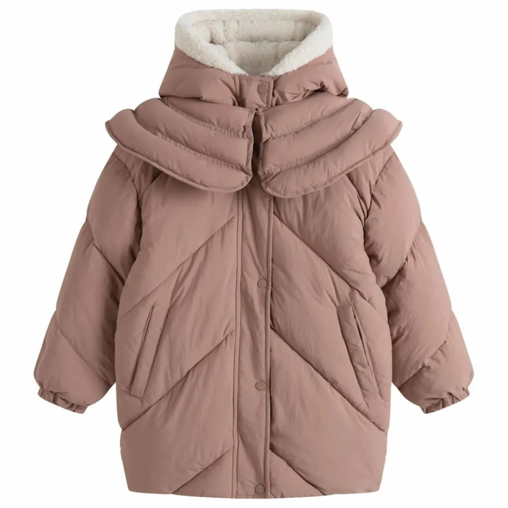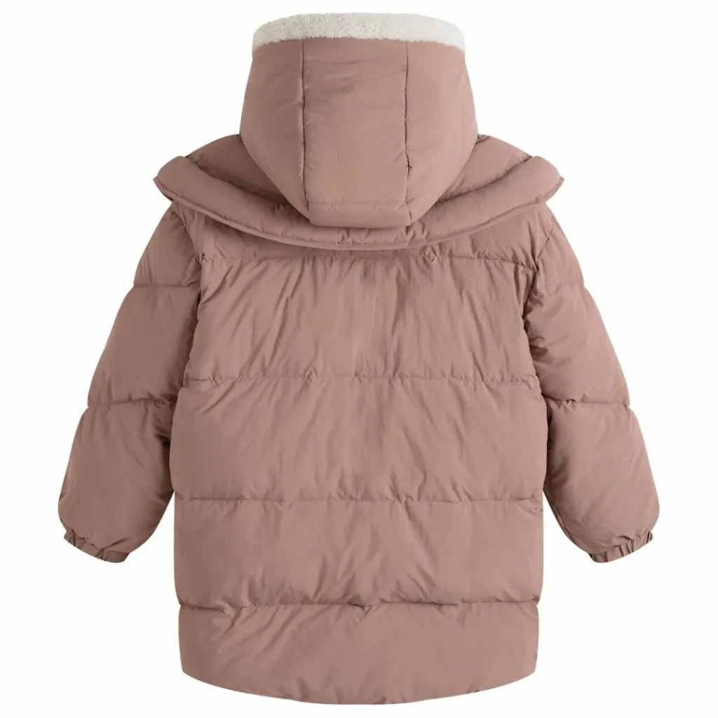 - Veste matelassée avec capuche doublée de fourrure. Fermeture à bouton-pression et à glissière