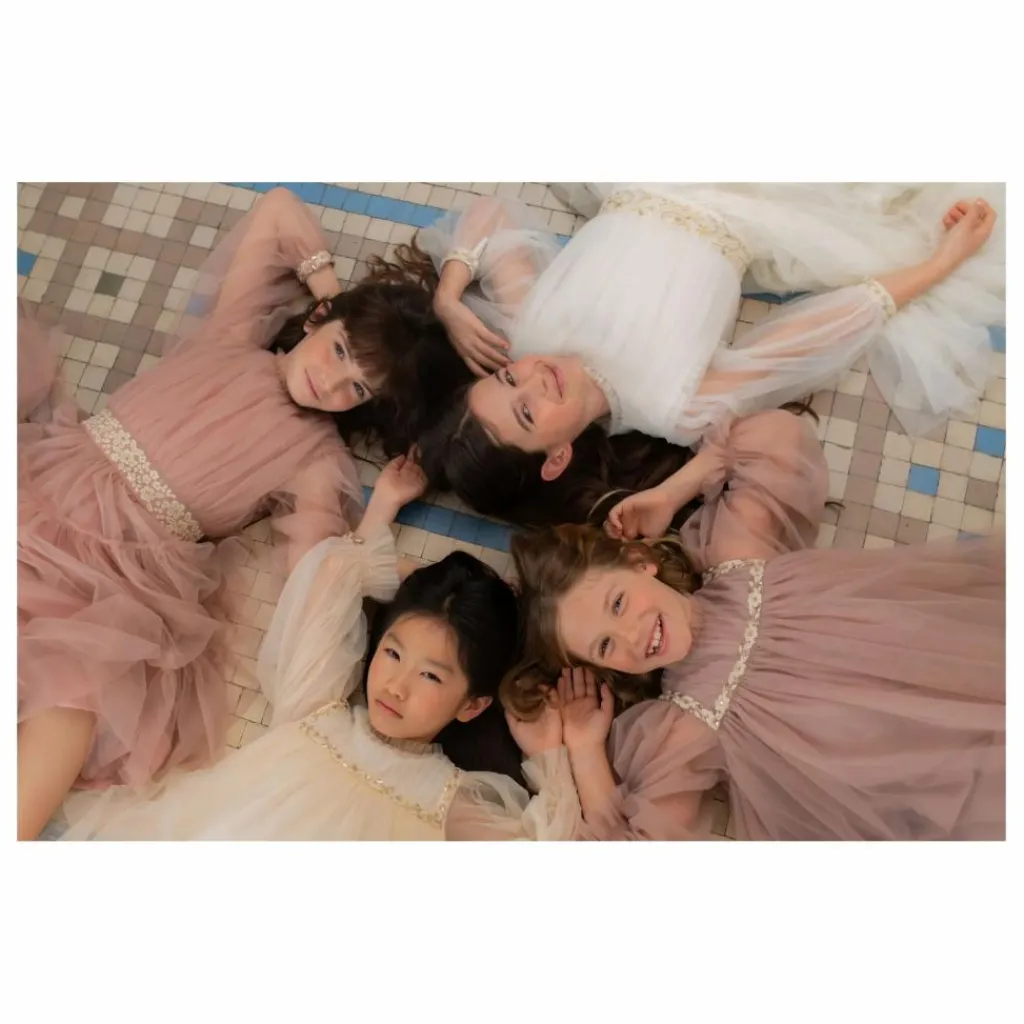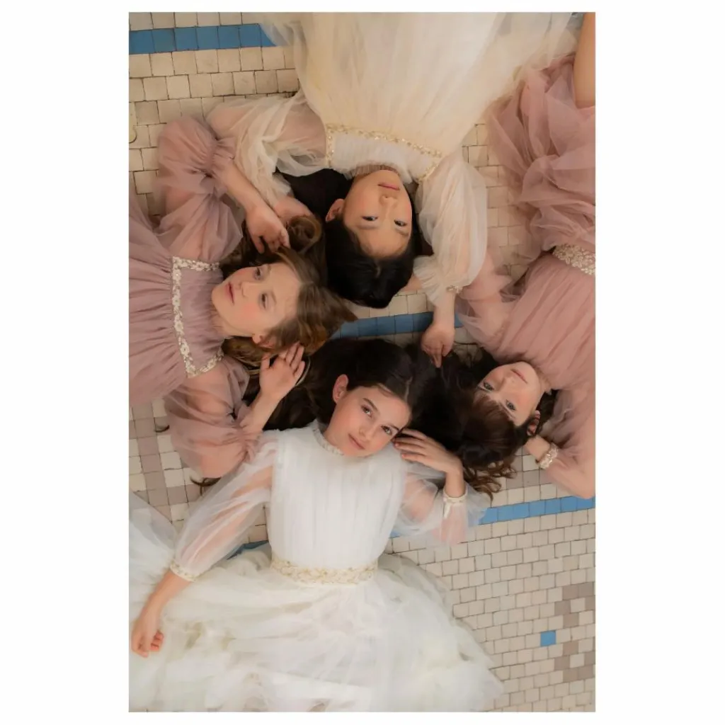 - Élégante robe en tulle avec une délicate taille brodée ornée de motifs floraux. Doublure en coton