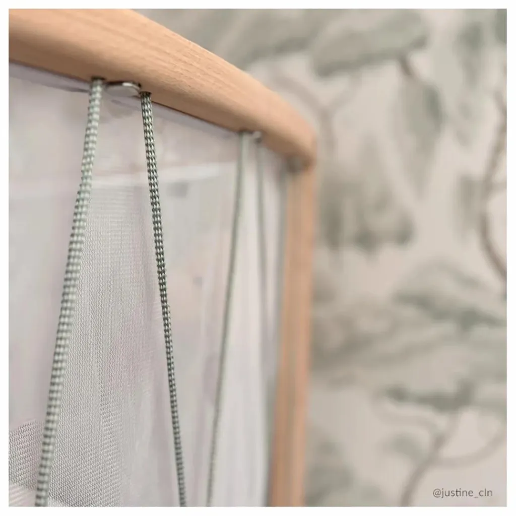 Le lit comprend 1 sommier, 4 arceaux, 4 pieds, 1 cocon, 6 lacets de longueur 6,50 m