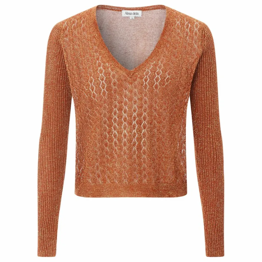 - Encolure V, Manches longues, Pailleté, Jeux de maille, Maille ajourée