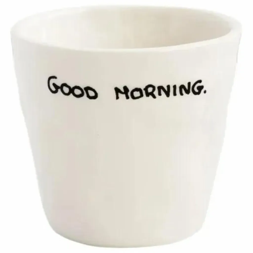 La tasse à espresso Goodmorning est fabriquée en céramique. Si cette tasse ne vous permet pas de passer une très bonne matinée avec votre café préféré, nous ne savons pas ce qu’il en est. Combinez-la avec toutes les autres tasses pour une fête du café des plus agréables le matin.