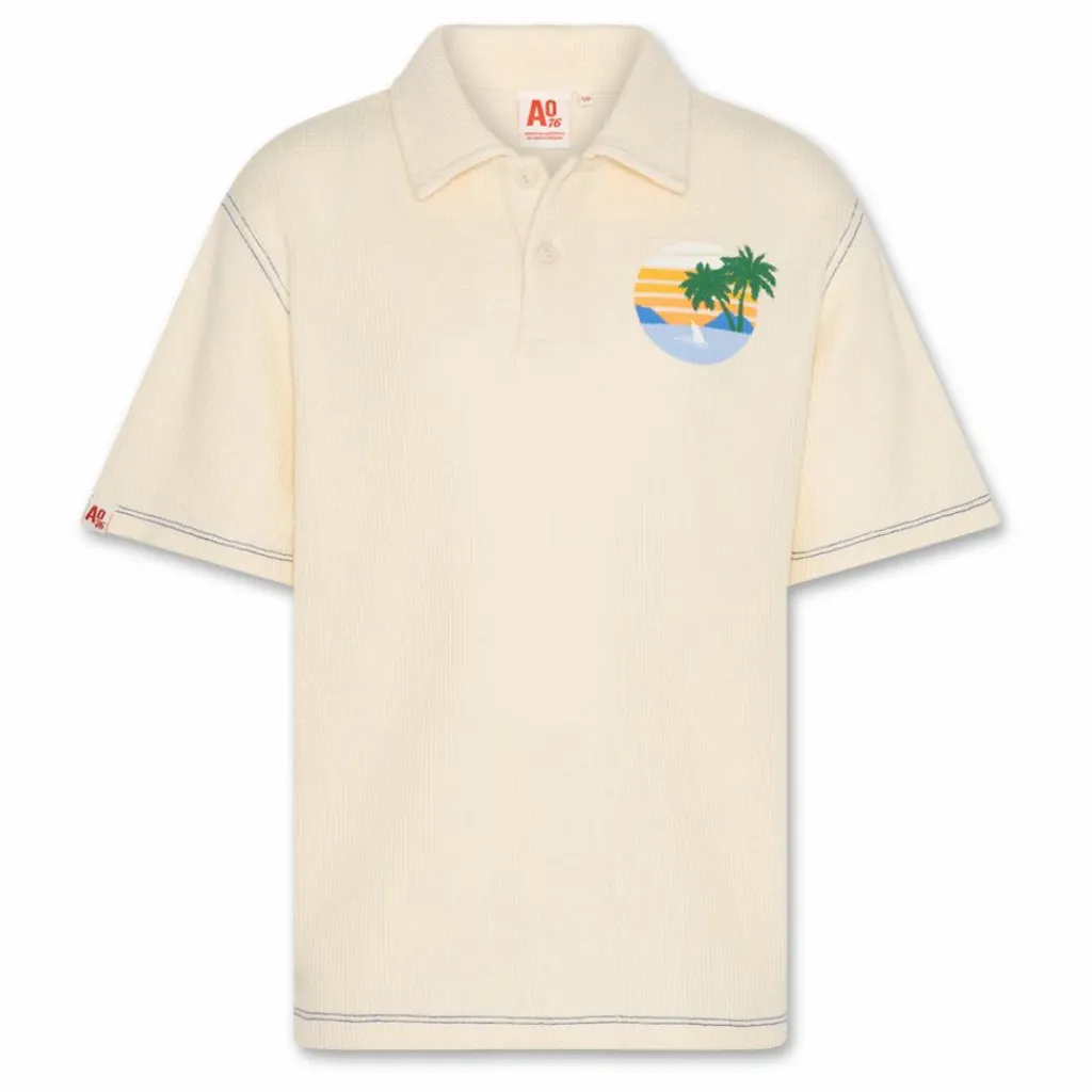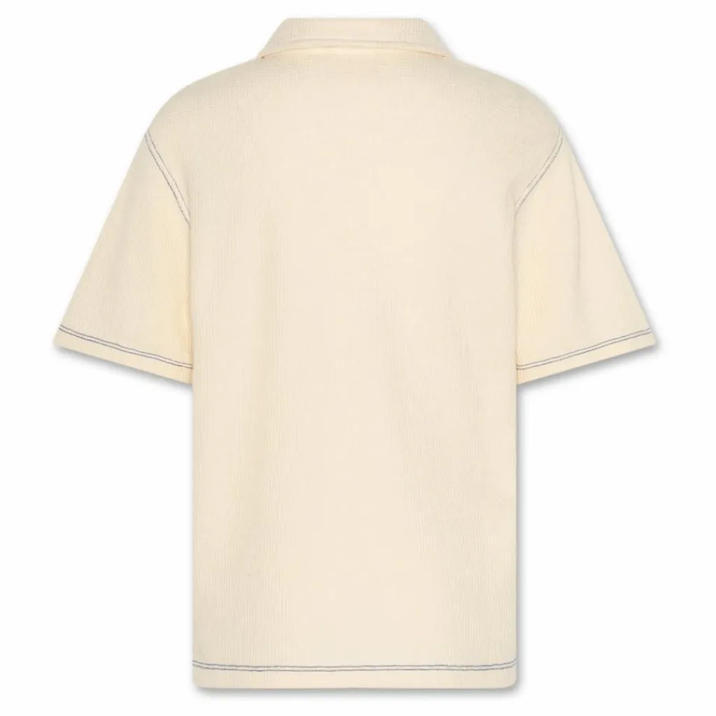 - Effet gaufré, Emmanchures basses, Manches courtes, Surpiqûres contrastées, Etiquette de marque cousue , Col boutonné, Col polo