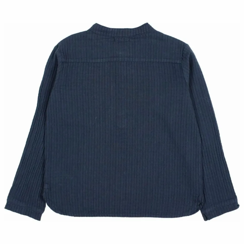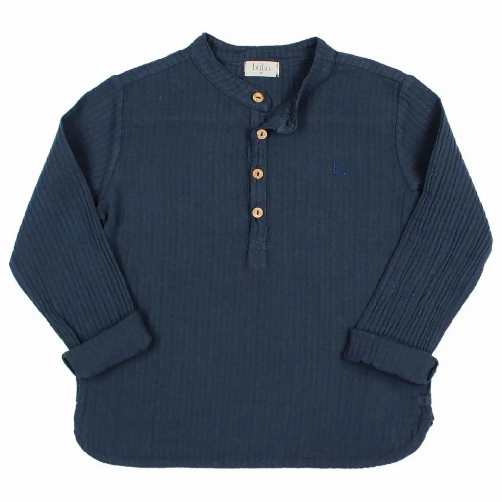 - Chemise avec broderie sur la poitrine. Col mao et manches longues. Fermeture par bouton en bois sur la poitrine.