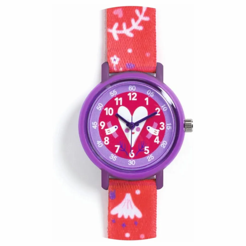 - Une montre à quartz élégante et joliment illustrée d’un cœur pour apprendre à lire l’heure.