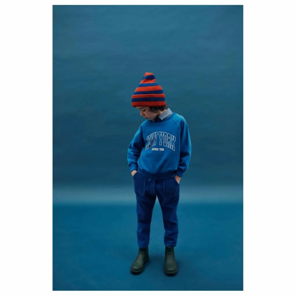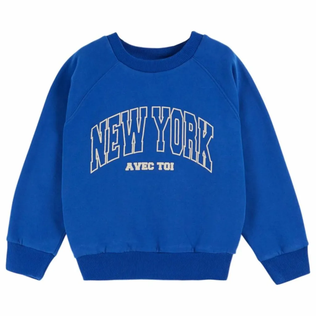 - Sweatshirt en jersey de coton biologique molletonné et gratté bitume imprimé » New York avec toi » sur la poitrine.