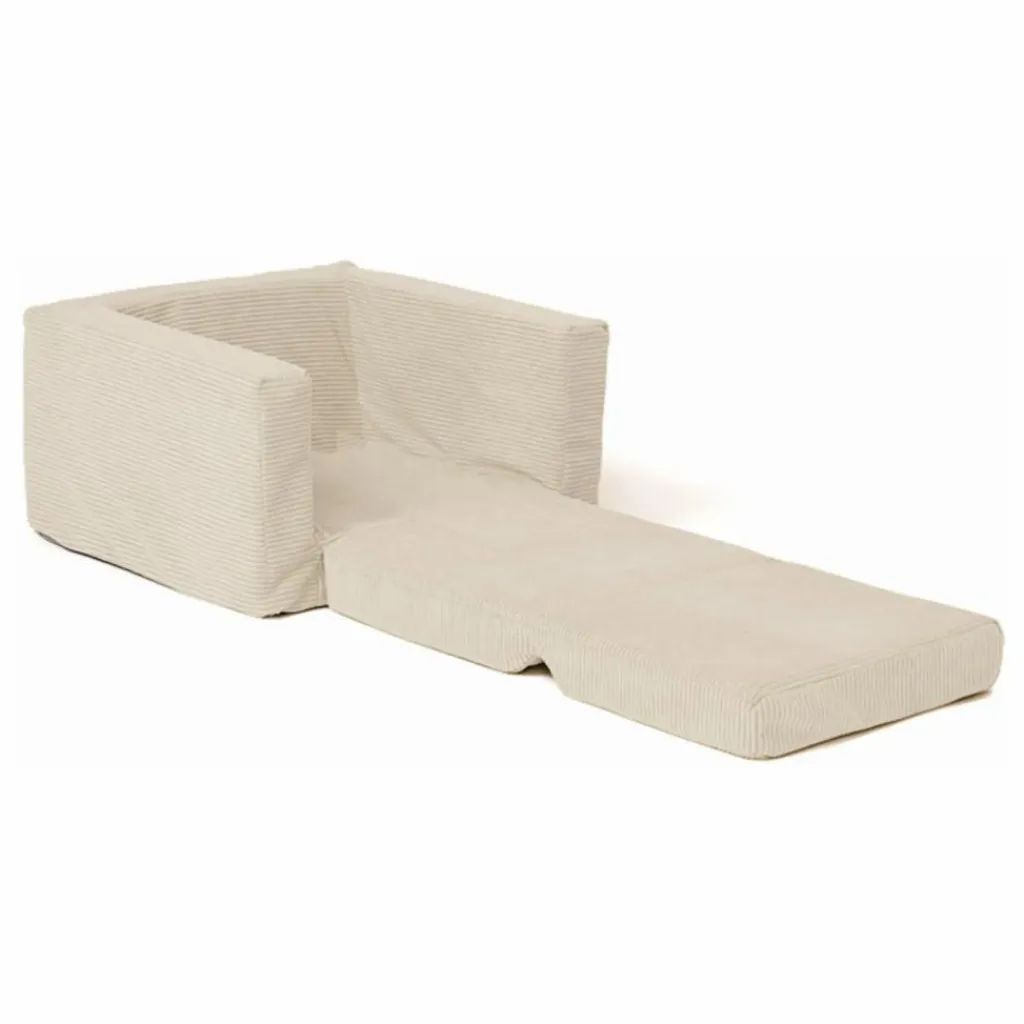 - Détendez-vous dans le fauteuil pliable de Kid’s Concept, sur lequel les enfants peuvent s’asseoir ou le déplier pour obtenir un matelas confortable. Allongez-vous et sentez le velours côtelé tout en vous rendant confortable, et profitez d’un moment avec un bon livre ou détendez-vous simplement.