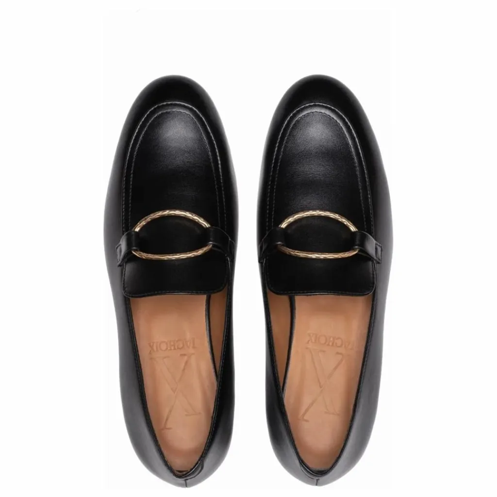 - – dessus : cuir – semelle : cuir avec caoutchouc à l’avant – application d’or