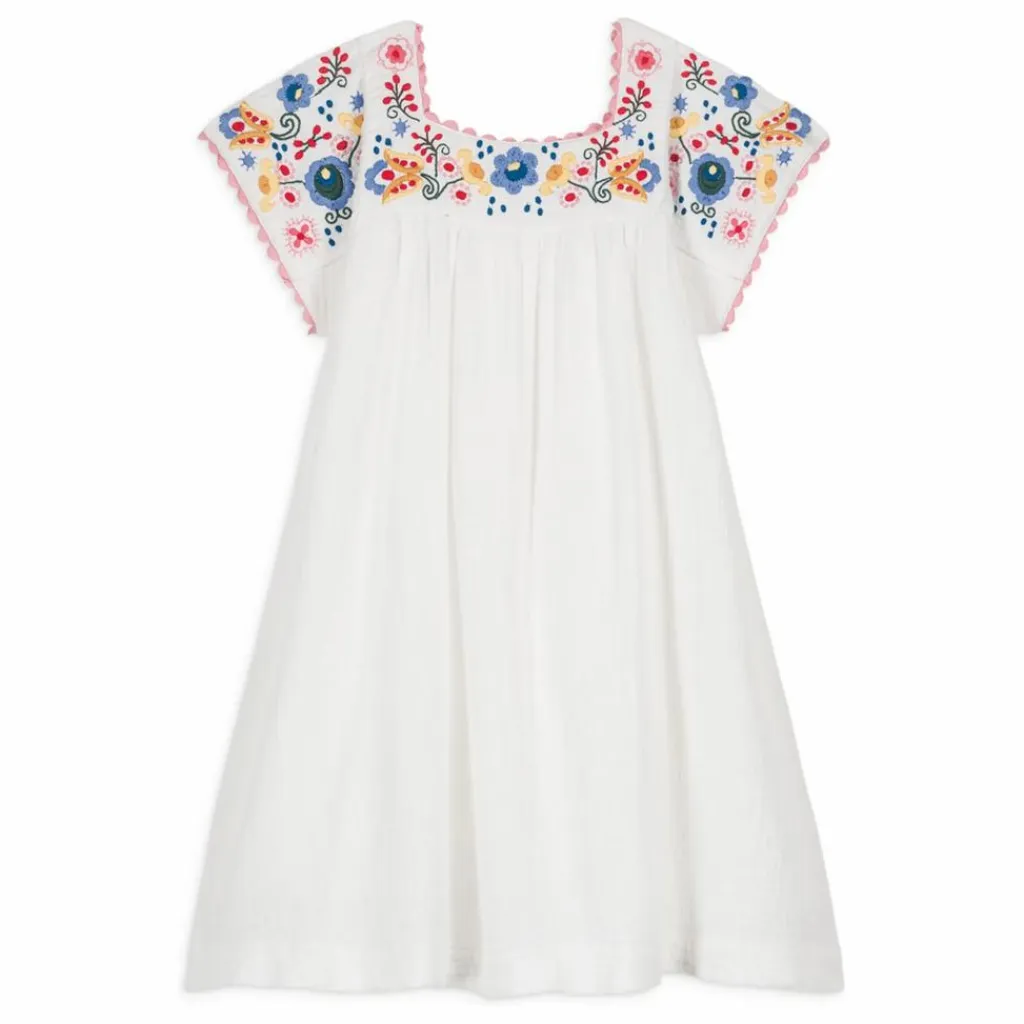 Broderies fleuries d’inspiration vintage sur le plastron.