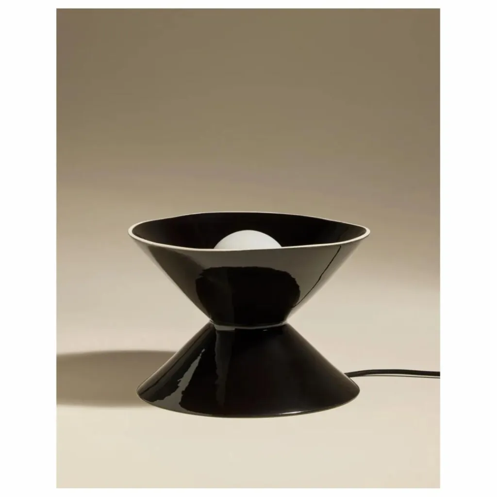 - Éloge du temps. Pensée comme une véritable sculpture aux courbes imparfaites, la lampe Sablier ouvre une nouvelle brèche dans la collection de luminaires Maison Sarah Lavoine. Déclinaison monochrome du modèle originel bi-colore, cette version 100% noire saura conquérir les décors les plus audacieux. Cette lampe, dont la lumière se déploie plutôt à l’infini, est idéale pour habiller un bout de canapé, se nicher dans une bibliothèque ou s’exposer sur une console d’entrée.Pensée dans un atelier au Portugal, cette lampe a été entièrement confectionnée à la main, sa céramique à l’émail réactif ayant nécessité une succession d’étapes réalisées par plus de dix artisans.