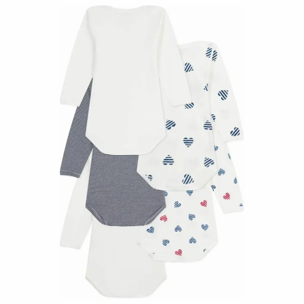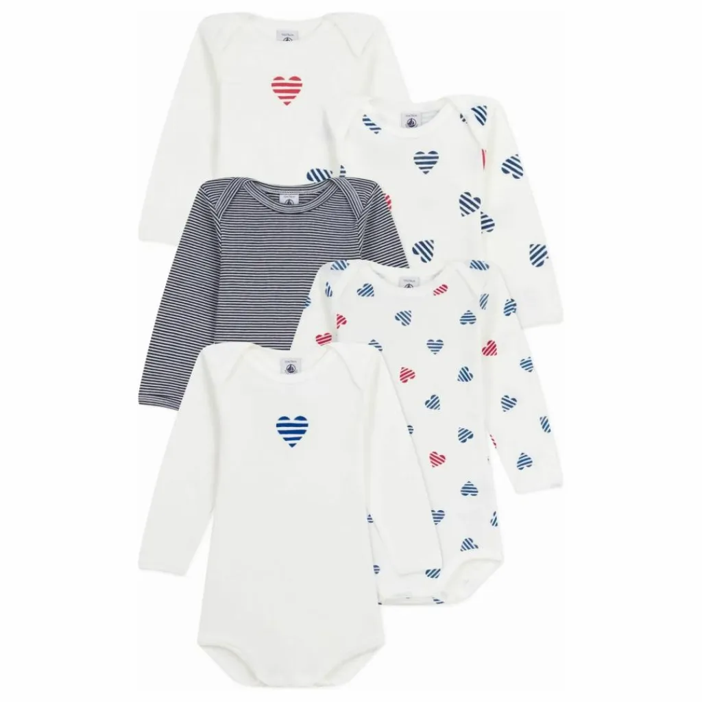- Pratique grâce à l’encolure américaine et aux boutons-pression à l’entrejambe. Ce lot comprend deux bodies imprimés, deux unis avec sérigraphie cœur et un body à rayures milleraies.