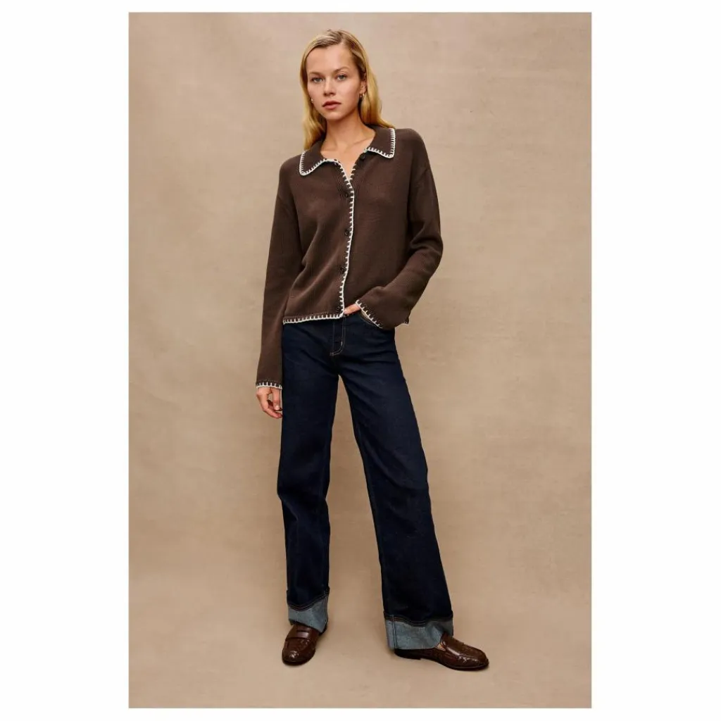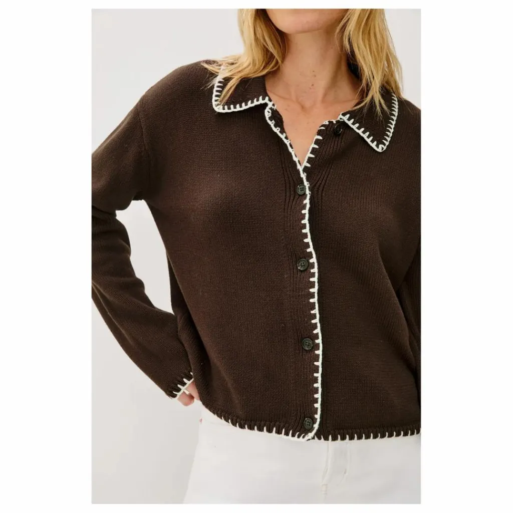 - Le Rayleen est un cardigan à col en fil de coton doux. Il présente une coupe confortable et décontractée et des détails en surpiqûres.