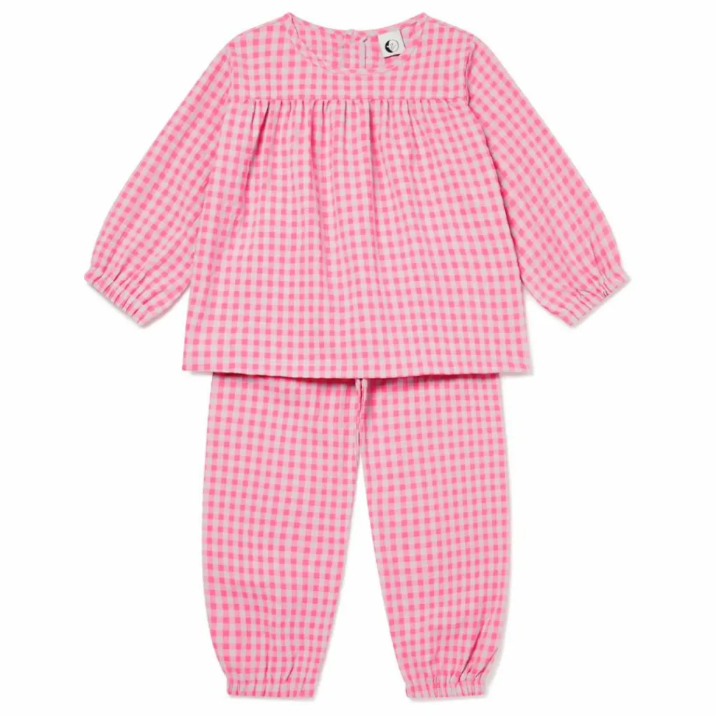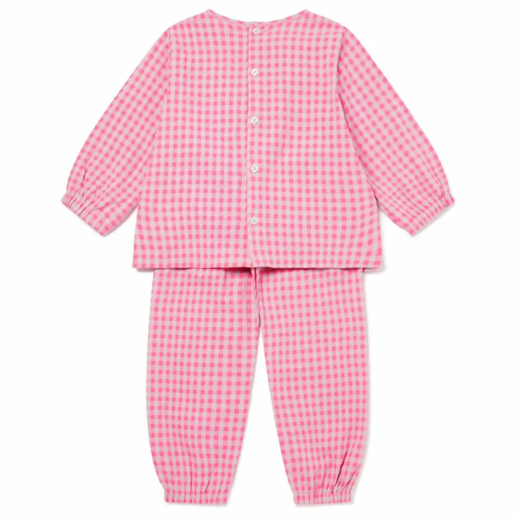 - Pyjama 2 pièces avec dos boutonné. Taille élastiquée et pantalon à revers