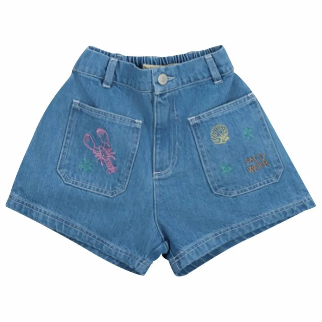 - Short Kostas en denim 100 % coton. Short avec deux poches avant et broderies caractéristiques de la collection.