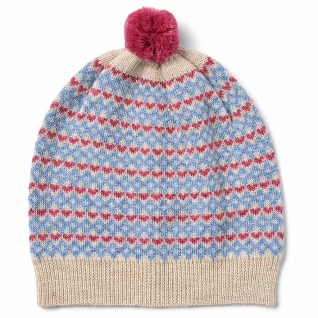 - – Motif jacquard unique – Pom pom en couleur contrastée – Bord côte à la base