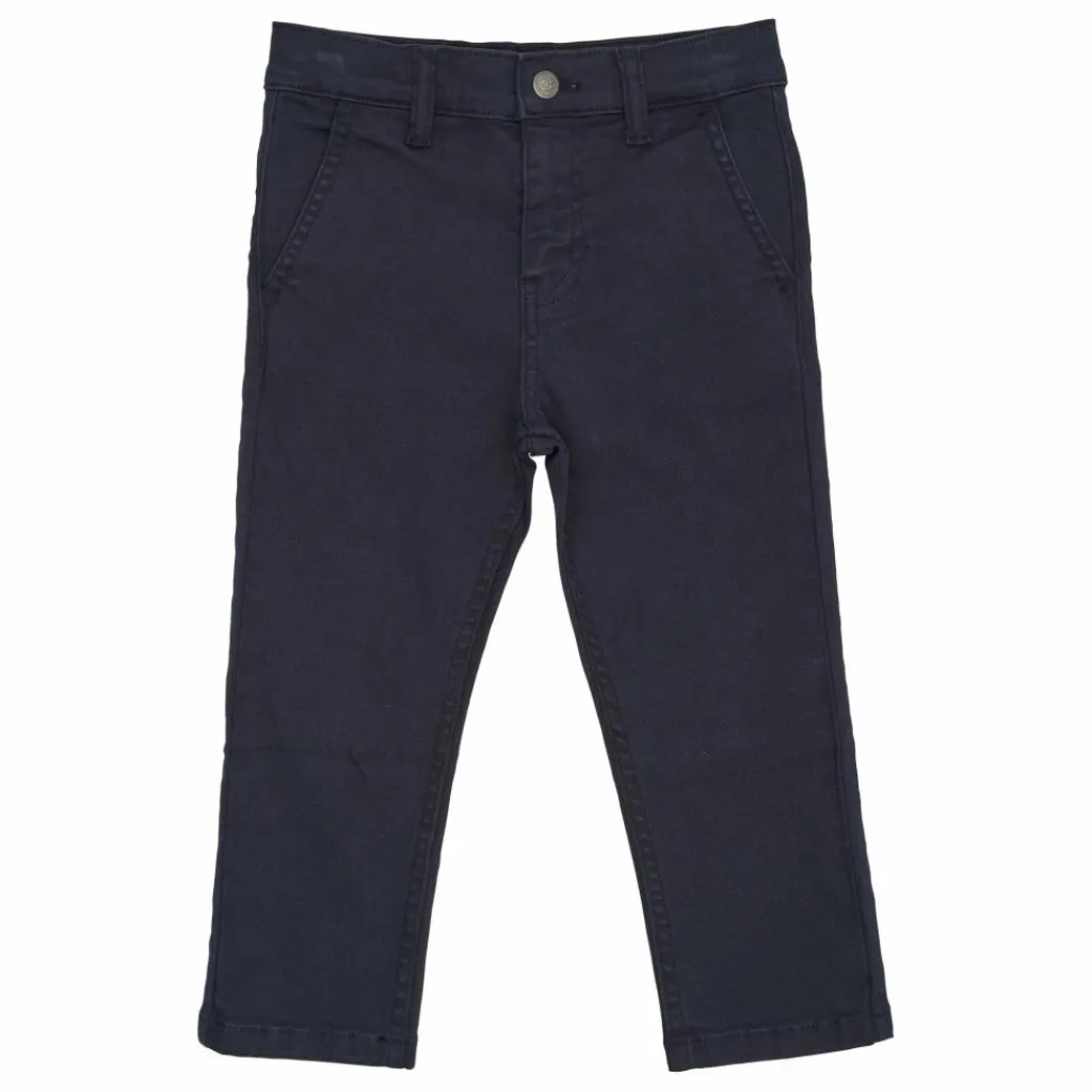 - Ce pantalon a une poche de chaque côté. Le pantalon est réglable à la taille. Les chinos sont fabriqués en 100% coton biologique.