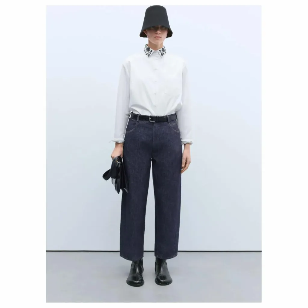 - Conçu pour un usage quotidien, ce pantalon présente une ceinture élastique à l’arrière, une taille haute et une jambe droite. Il est doté de poches latérales et arrière, ainsi que d’une fermeture à glissière avec bouton. Il est agrémenté de coutures en pointe qui s’incurvent autour de la jambe et de passants pour la ceinture.