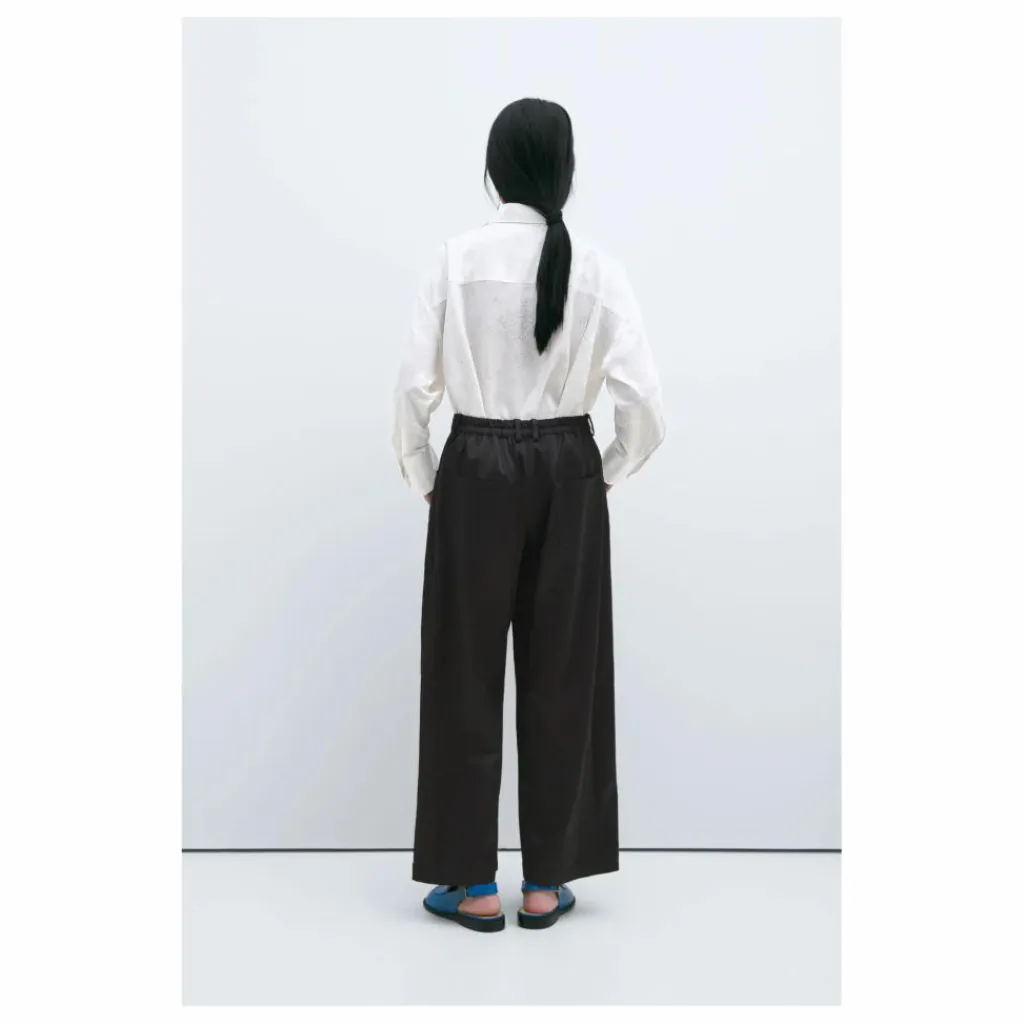 - Notre forme droite emblématique avec un nouveau tissu. Conçu avec une taille élastique à l’arrière, une taille haute et une jambe incurvée, il est doté de poches latérales et arrière et d’une fermeture à glissière avec bouton. Le tissu satiné rend ce vêtement unique et se combine parfaitement avec n’importe quelle chemise.