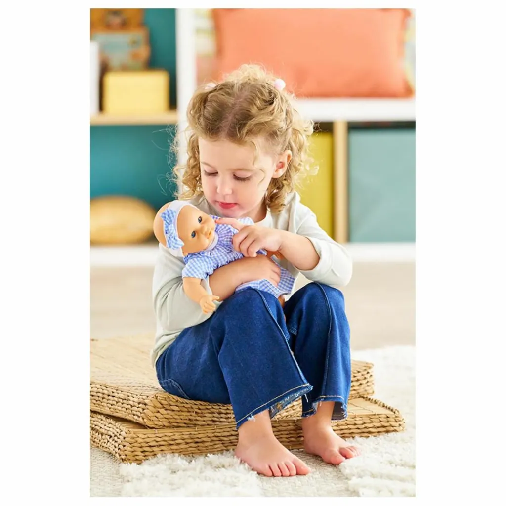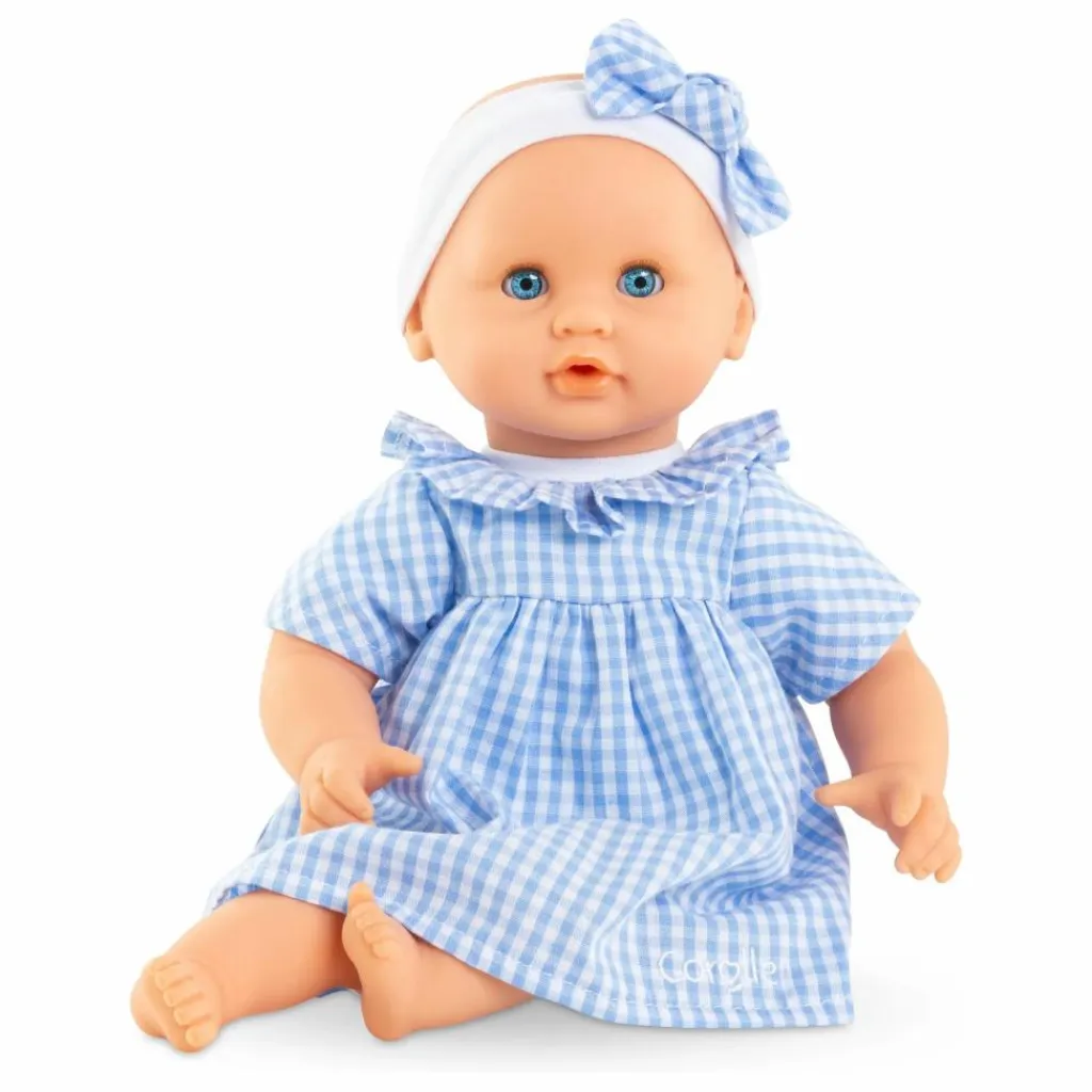 - Petit poupon de 30 cm. Prend et garde les attitudes d’un vrai bébé. Corps souple. Yeux dormeurs. Senteur de vanille. Dès 18 mois.