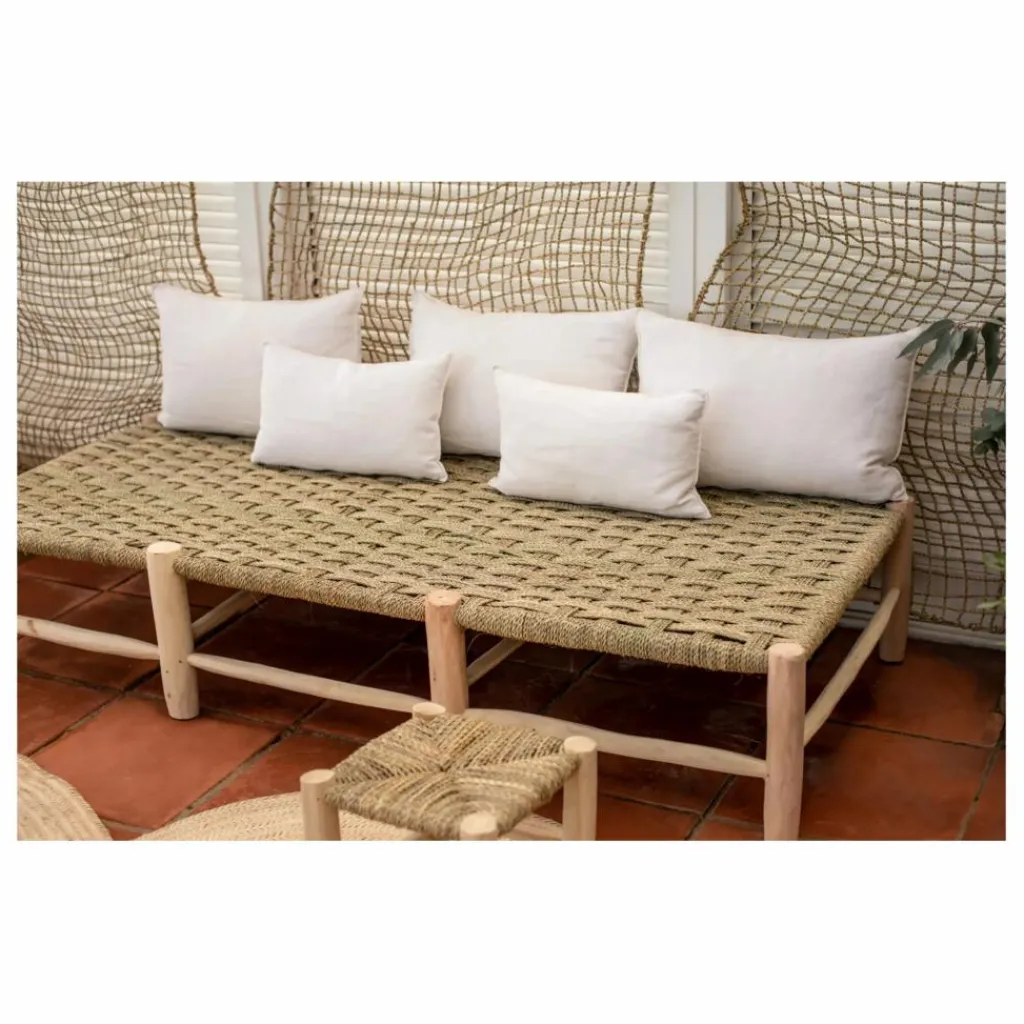 - Les produits Cosydar sont authentiques, riches de l’artisanat marocain. Cette banquette 8 pieds en bois sera parfaite dans un salon ou pour habiller une entrée. Son assise confortable a été tréssée en feuille de palmier et apportera une touche ethnique et naturelle à votre intérieur.