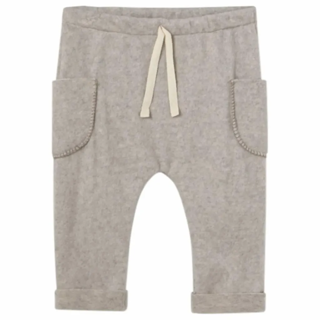 - Pantalon en tissu tendre de bambou avec un effet de mélange. Taille élastiquée avec cordon décoratif. Poches plaquées sur les côtés. Ourlets retroussés.