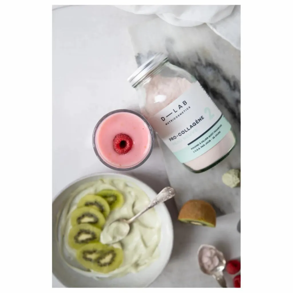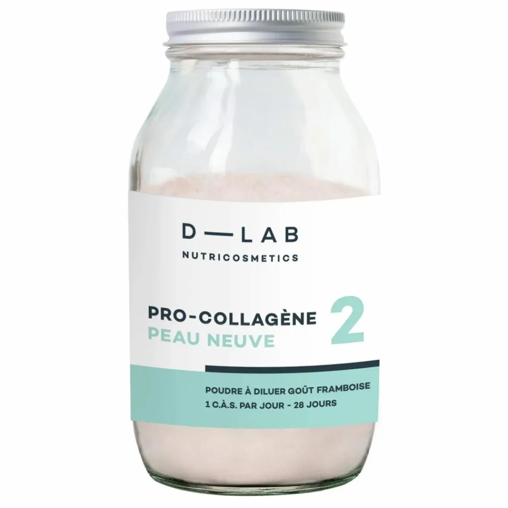 Poudre Pro-Collagène Peau Neuve propose une formule qui associe un complexe d’oligopeptides de collagène marin, un acide hyaluronique de haute qualité et de la vitamine C pour combler les rides et ridules, raffermir et protéger la peau. Des actions prouvées par étude clinique et un délicieux goût framboise.
