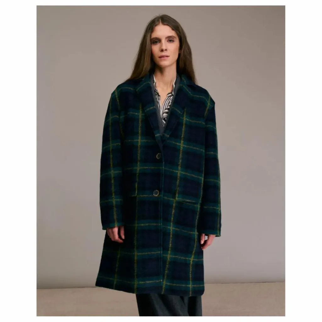 - Manteau cintré, col à revers crantés et manches longues. Poches avec rabat sur le devant. Fermeture devant avec deux boutons.